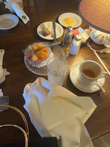 Read moreMy mom and I stopped here on our way through town. We were excited because, with it being called a tea room, we were expecting a variety of piping hot teas in large teapots, delicious English inspired tea cakes and sandwiches, etc. We ordered English breakfast tea and it came out in a small pot, string bags already in the mugs and lukewarm water at best. It tasted like Twinnings or Lipton instead of a lovely English tea. The pot held about two cups. The fruit salad with glaze on the Medley tasted like can fruit and some kind of pie filling. The pumpkin bread with cream cheese filling was ok, but didn’t taste homemade and the bread seemed like it had been refrigerated instead of baked in house. Thr chicken salad was pretty good but instead of cracker varieties to eat it with, it is served with Ruffles potato chips. It would have been ok if the price wasn’t as high as it was for what it was. We also had soup and but the French onion and potato soup tasted like a package instead of in house, and both were cold. . Again, for the price, we expected something more authentic. We...