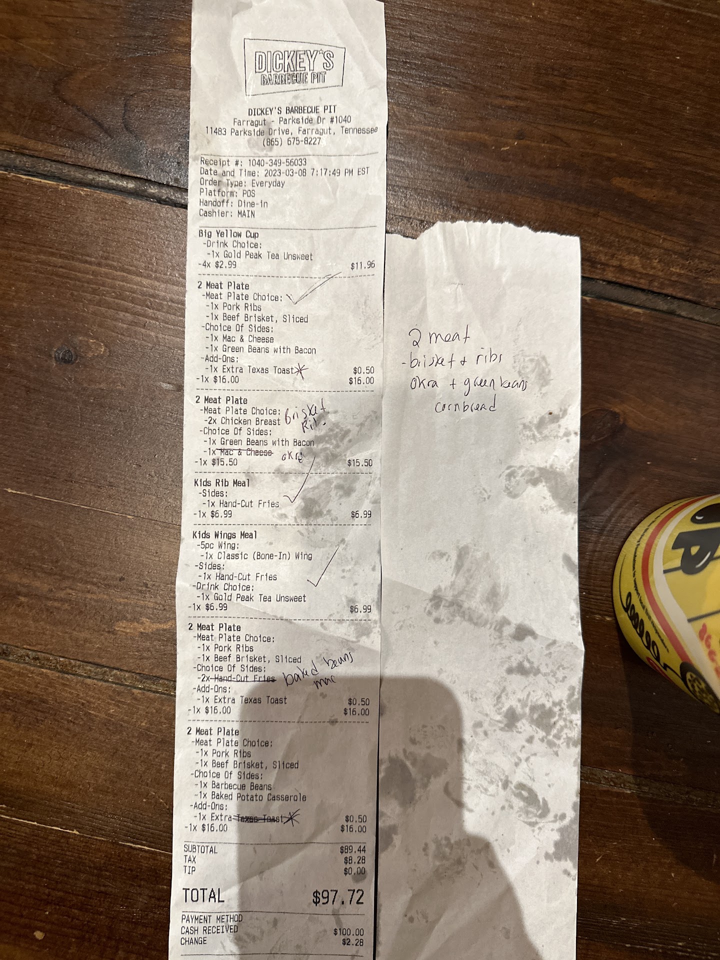 Read moreOriginal Zomato Review 8/22/15 - 8/25/17 - Update - Dickey's has changed its sweet tea from brewed to Gold Peak. Can't anyone spend a few extra cents to do it right for the customer. Dropping my rating from 4.0 to 2.5.