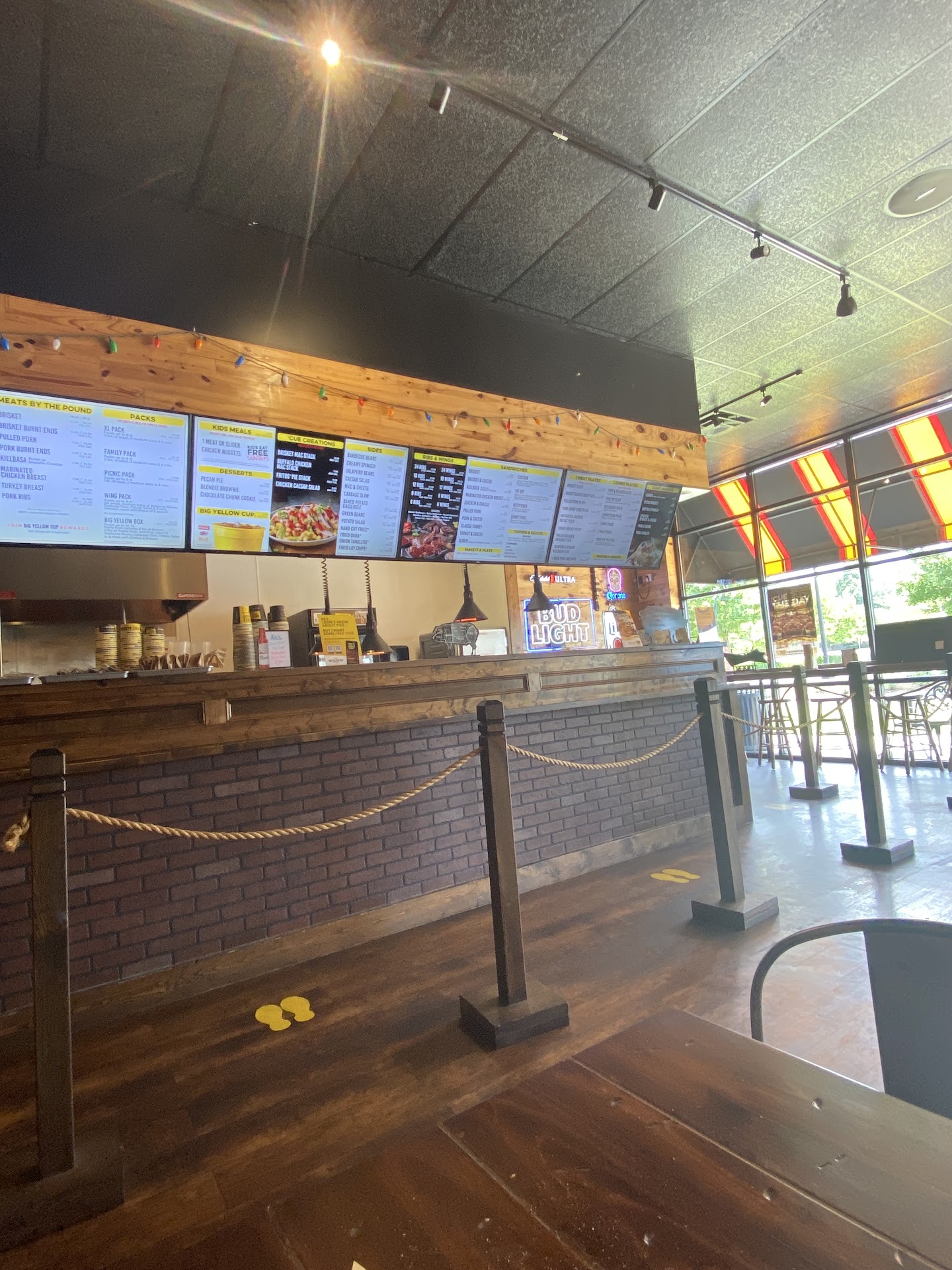 Upon entering: there was no hello how are you, welcome in or anything. The (what seems to be by type of shirt) manager was standing in the corner closest to the door, said absolutely nothing to us. The Asian (don’t know her name) lady was very irritated to be working today. No enthusiasm with us, just bland service. The guy at the register was friendly though, I feel bad he has to work with the Debby downers though. The dining room tables were all dirty, the sweet tea was old. When our food came out, our child’s food did not come with. We were not communicated to about when her food was coming out until they brought her sides and told us 2 more minutes on the chicken nuggets. I work in food, I get it, but they should have communicated with us instead of leaving us to think they forgot about it (first thought due to their lack of talking while ordering). Food quality was good, better than the last time we came, it was hot as well. The sauces are subpar for a bbq place but at least the food tasted good. The Asian lady when coming to check the dining room, stood on her phone for the better part of her time out here, proceeded to wipe a part of the soda counter, check the tea level (didn’t check the time date obviously), and did not bother to wipe any of the disgusting tables or check with the guests on how their food was. Overall not the best experience, which is unfortunate for spending $30 on two meals (kids eat free on Sundays, so it would have been more expensive if not for that). I’d recommend retraining customer service, attentiveness of the dining area, & revising/retraining a cell phone policy as that was the employees main focus. But hey, what do I know, I’m just an operations manager for a different...