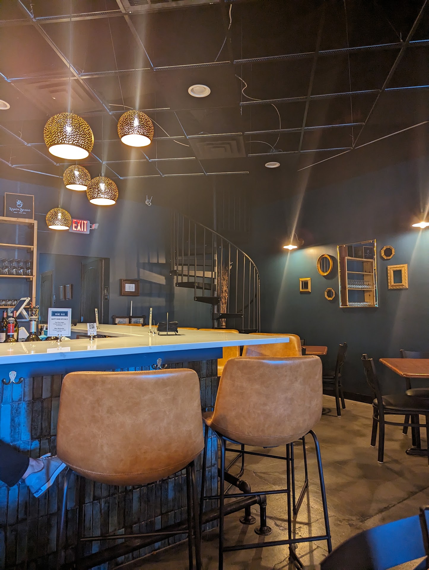 The space is perfect for a variety of occasions: a girls’ night out, a relaxing solo evening, or even a cozy date night. You can curl up on a couch with a book and a glass of wine, sit at the bar, or gather around a table with friends. I absolutely love the ambiance, with its dimmed lighting and tasteful decor—it feels warm, inviting, and chic.