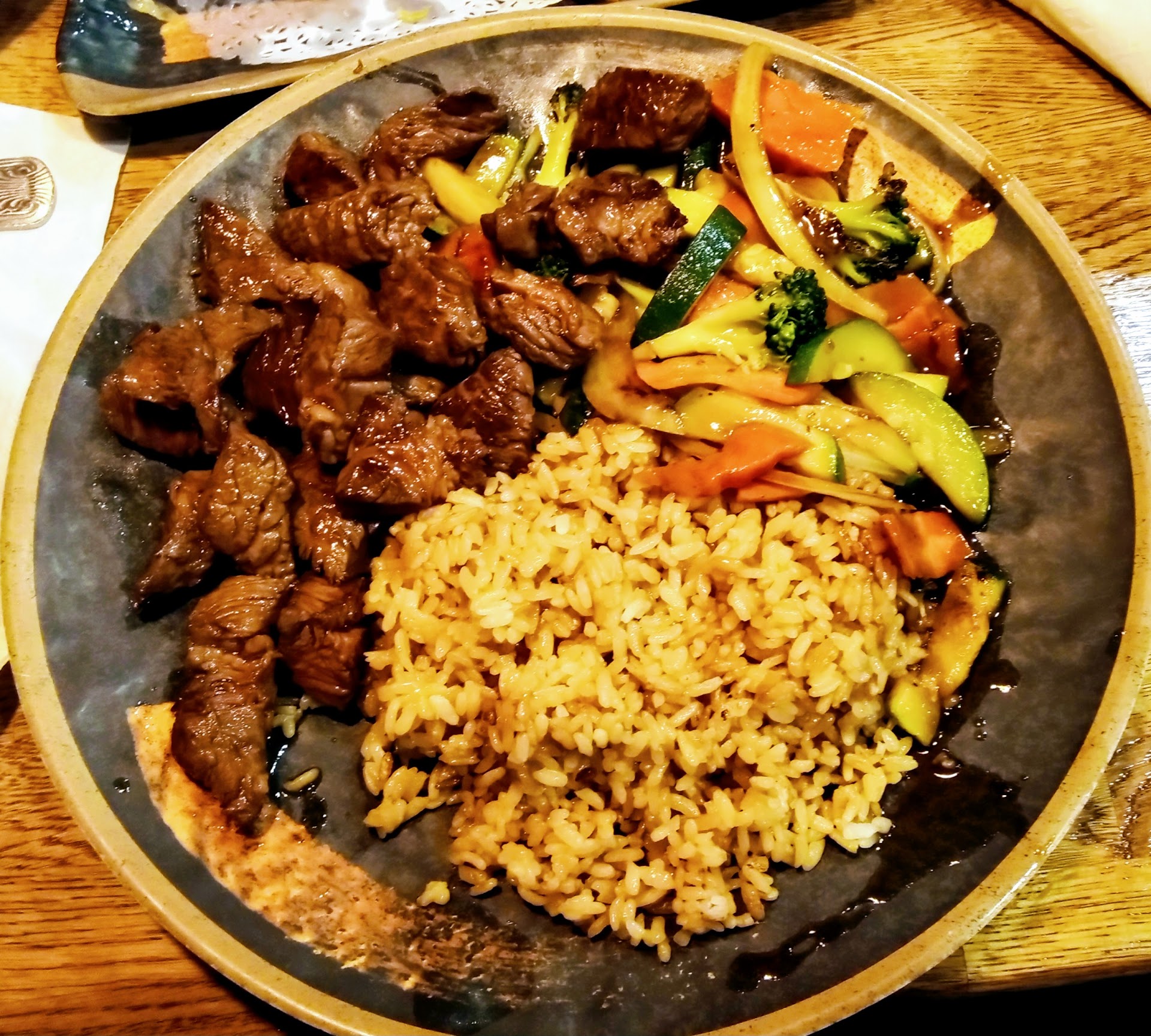 For our entrees, I got the spicy miso based ramen with shrimp. So full of flavor! My son ordered the chicken and steak hibachi and was in Love. My fella got the vegan ramen base with tofu and was very impressed with the flavor profile.