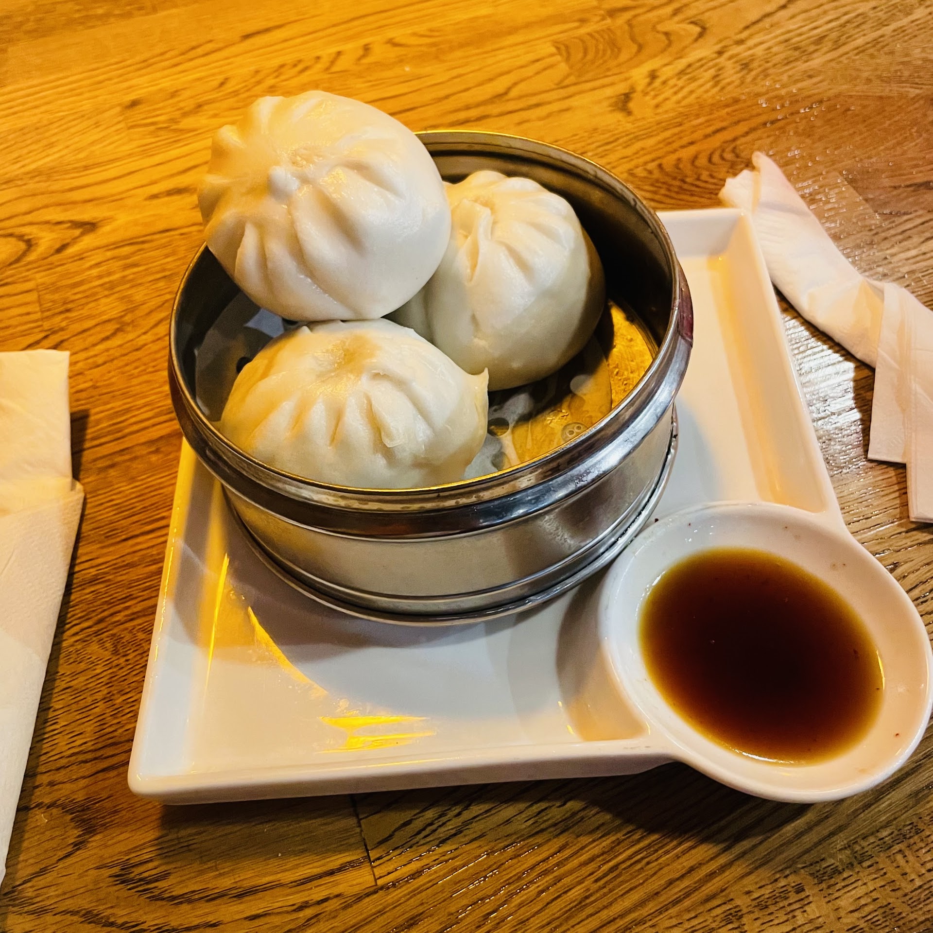He quickly got the kids’ bubble tea started and came back to collect our orders. The meal was well-paced, with our appetizers arriving at regular intervals, giving us time to enjoy each one. We tried the pork buns (ah-Mazing!) Japanese spring rolls and edamame.