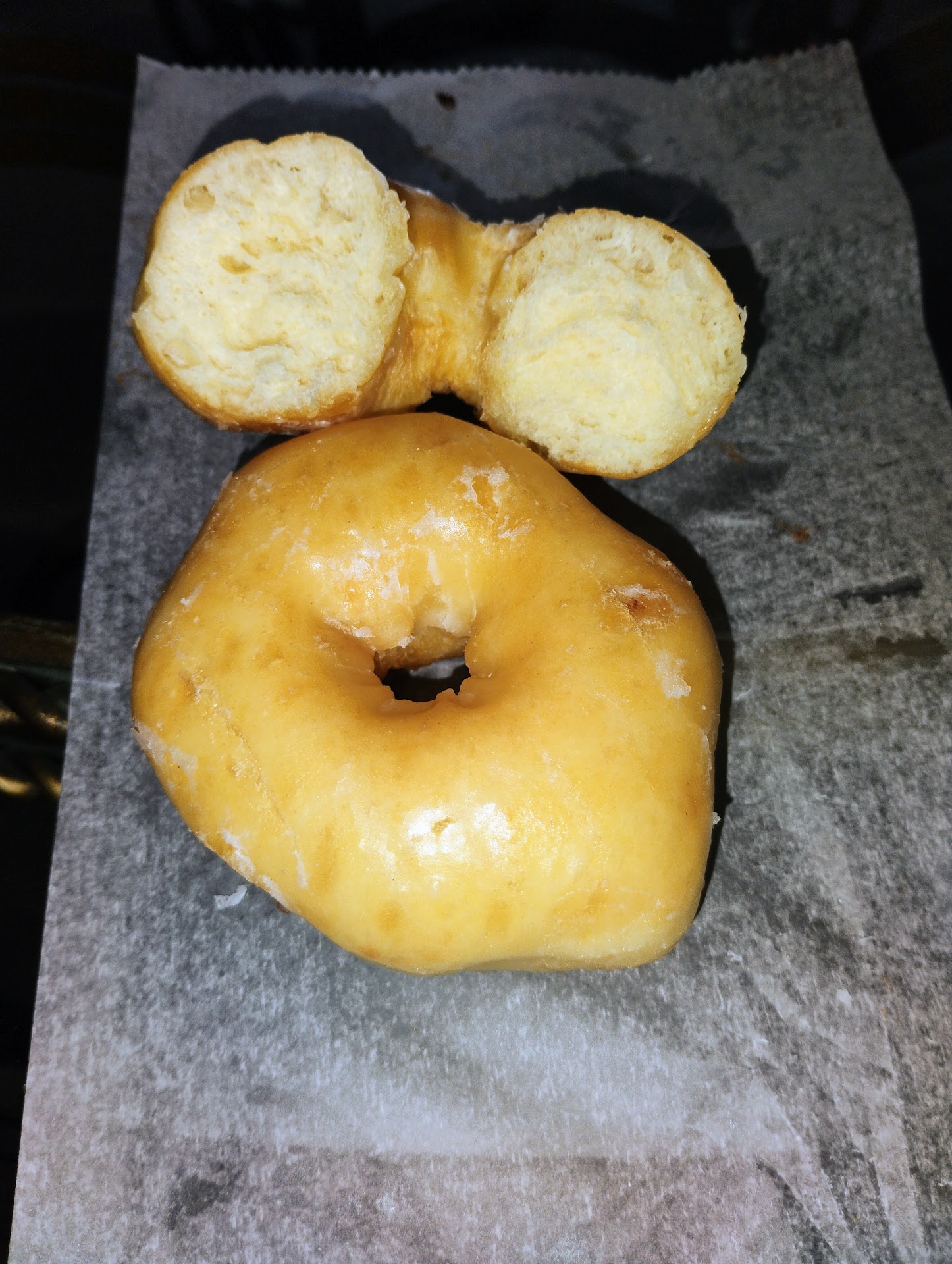 The dough is light, moist, not clumpy or heavy, fluffy, and tastes like old fashioned doughnut bread. The chocolate and regular glaze even tastes as it should and not tasting like chemicals.