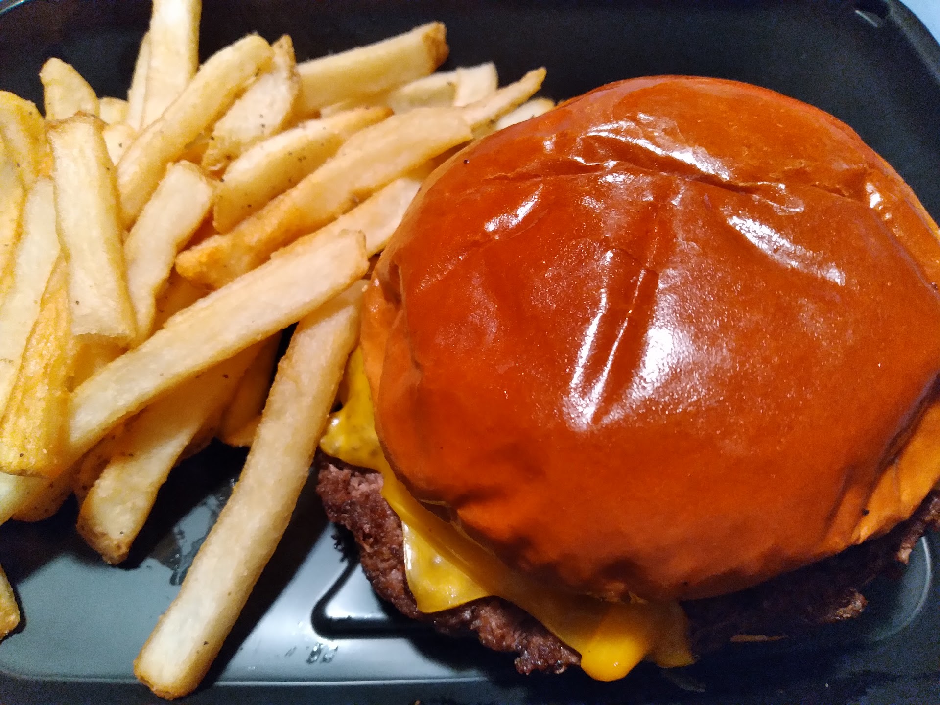 The burger was decent, I did enjoy it...the brioche bun with the seasoned burger is pretty good. But we were supposed to get an 2 orders of onion rings and 2 orders of fries. Instead we were given 3 orders of fries and 1 order of onion rings. And the Dr. Pepper was very watered down.