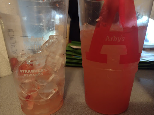 Now for the finale , the food. We will compare the drinks. Strawberry acai lemonade from Starbucks Vs. Market fresh strawberry lemonade from Arbys.