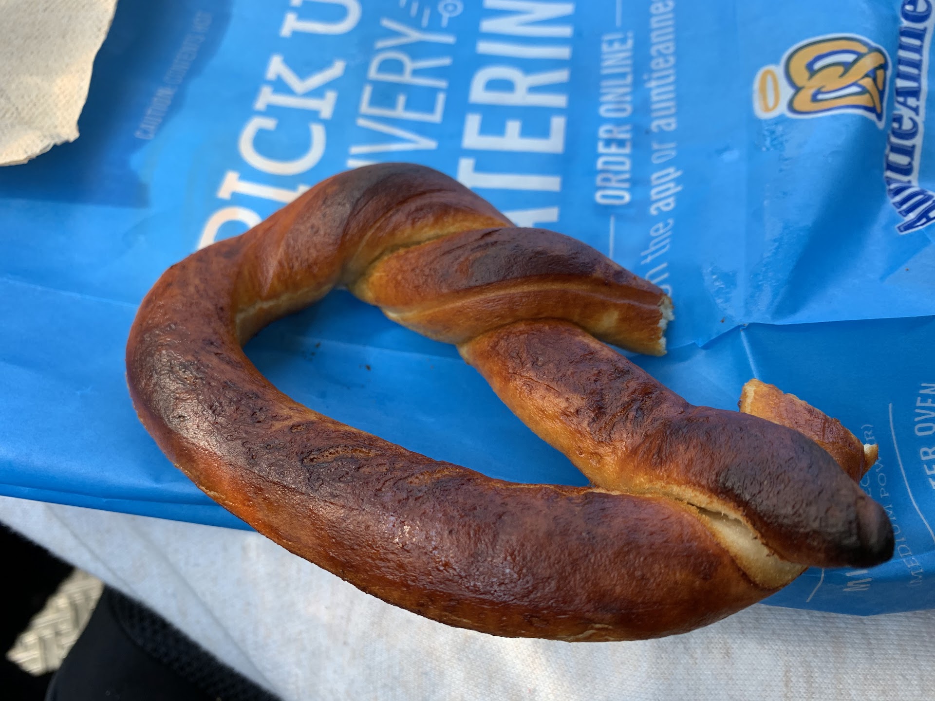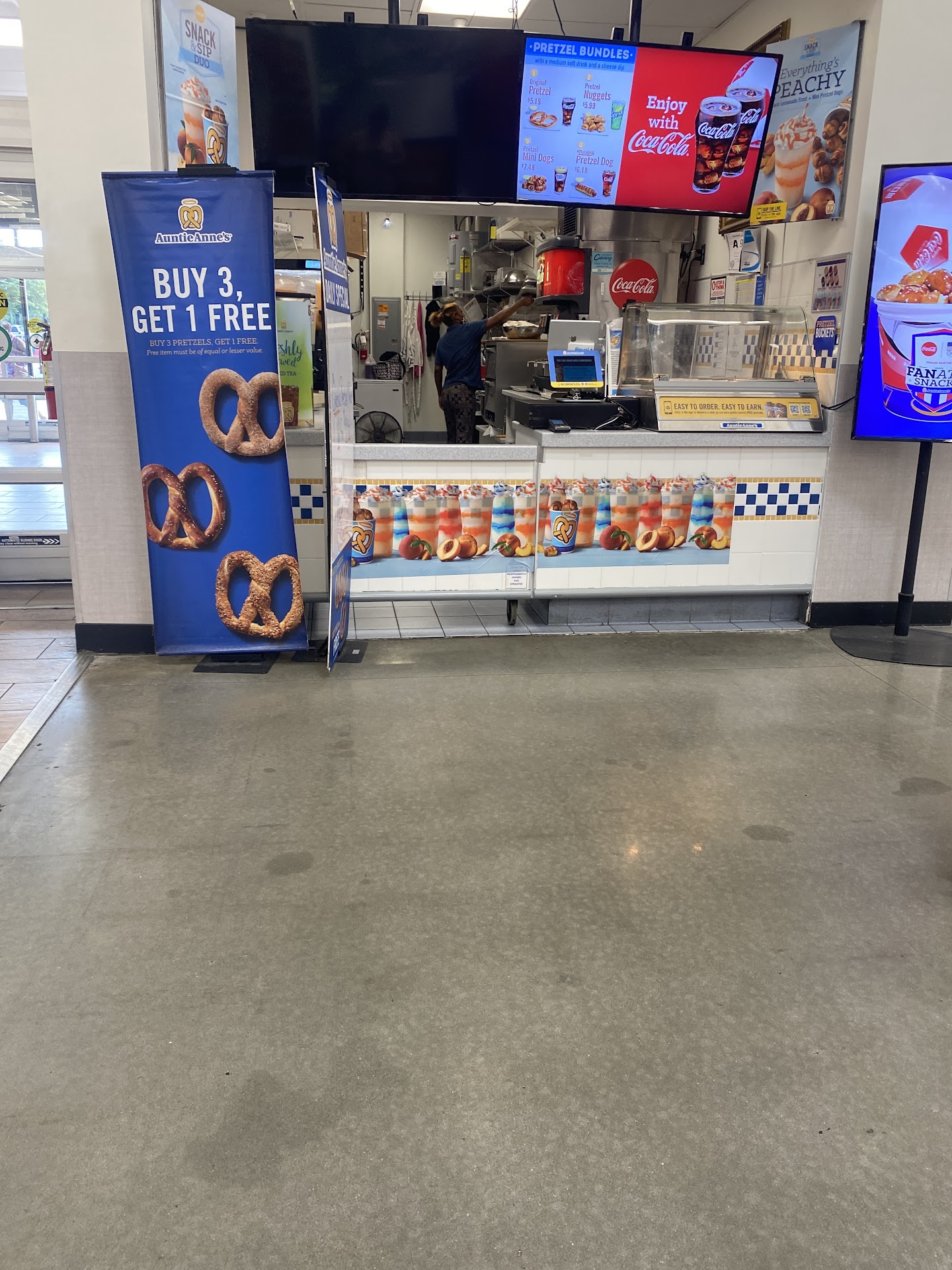 Read moreI sent my 16 year old in solo to get his favorite snack. He has a $20 and returns to the car while I was getting a Walmart pick up. He had a really dark pretzel missing salt. He said it still tasted ok. I tried it and I guess it was ok but he said he tried to ask about salt but the employees were wearing ear buds and didn’t want to be bothered with his questions. Now I say this came from my 16 year old but he is a pretty honest kid. The second pretzel did have salt. I guess I wouldn’t have hated the lack of preparation so much of it was a ams club $.97 option but come on Auntie Ann’s! Your twisted dough cost way too much for you to give sub par product. This pretzel is too dark and crunchy without...