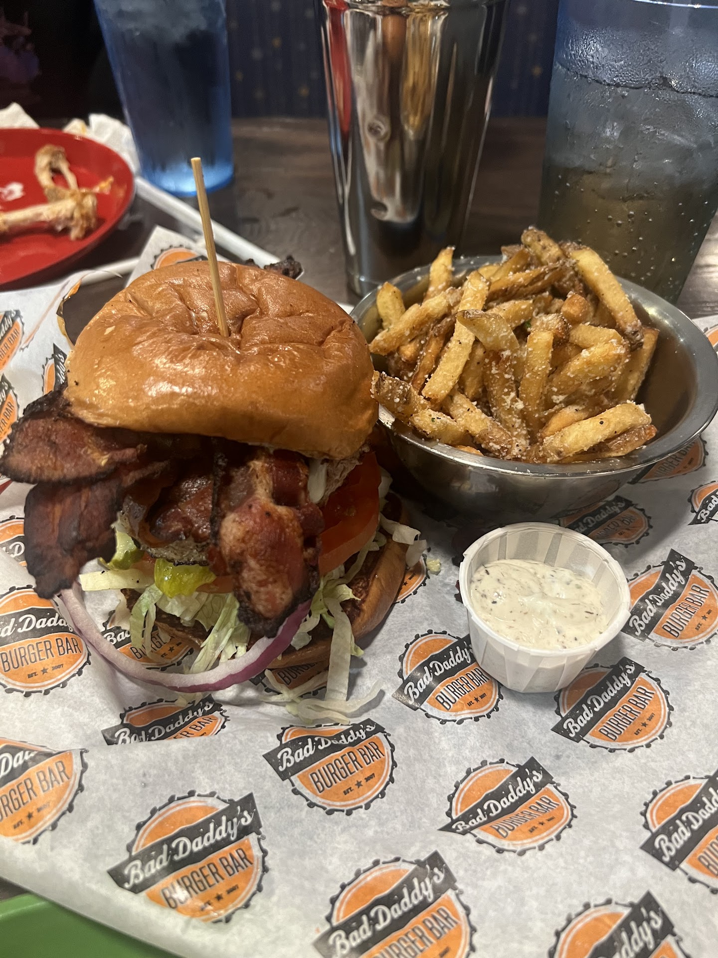 My son had been wanting to try this place for months. Him and his Dad are burger lovers to the core! And their burgers were great from what I saw on their plates & from what they said:) My salad was one offered strait off the menu, it was fresh which I like! I ordered grilled chicken but when the chicken pieces were put back together it wasn't the whole chicken breast, so maybe they don't use the whole chicken breast per salad. At least my family got a good laugh out of the conversation from it ;) But besides the chicken, 3 of the ingredients mentioned in the menu description like cilantro and onions weren't even on my salad. The chipotle ranch was really good...HOWEVER when ordering, I did ask if the regular ranch was made in house and I was told "I'm not sure" with no check on that, basically I should have been told "I could care less" with the wording and how it was said. As a former waitress myself, I'm pretty dang lenient with many things cuz you never know who's helping who, someone in the weeds, what's going on with the cooks, etc...but um yeah our service for dinner tonight had MANY THINGS subpar at best like asking other waitstaff for silverware drinks literally empty to the point people were drinking melting ice and the Houdini act where An**y disappeared for over 15 mins. Perhaps a bit more training could be used to help encourage, I know how sometimes things getting blah or redundant can result in a loss of pep in our step...but when I spend over $100 eating out and hadn't ordered anything alcoholic to raise that figure...those 3 things mentioned should be better.