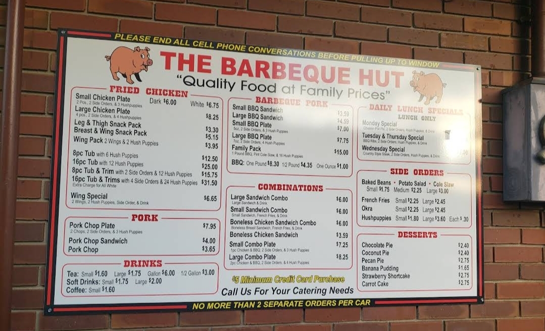 Read moreMy first visit to the establishment and the last. If I could give 1/2 star I would. I stood in line behind a couple to place my order. The cashier decided to pick up the broom and dustpan and proceed to the dining room. I stood there for a few minutes the drive thru person spoke to me while he was placing the order for the drive thru customer. Another lady who was washing dishes saw me and spoke to me and asked if I've been helped. I told her no and I told her the lady that was at the register just picked up the broom and dust pan and went to the dining room to clean. The lady in the dining room over heard what I said and wanted to argue with me. We got into a discussion. A lady from the kitchen, whom I assume was the manager interrupted the discussion and asked the lady to go back into the kitchen. The incident would've never happened if the original cashier would've asked me if I've been helped, instead it's like she didn't see me. It's not like am a petite woman and couldn't be seen. Needless to say I'll never visit Bar-B-Hut again on...