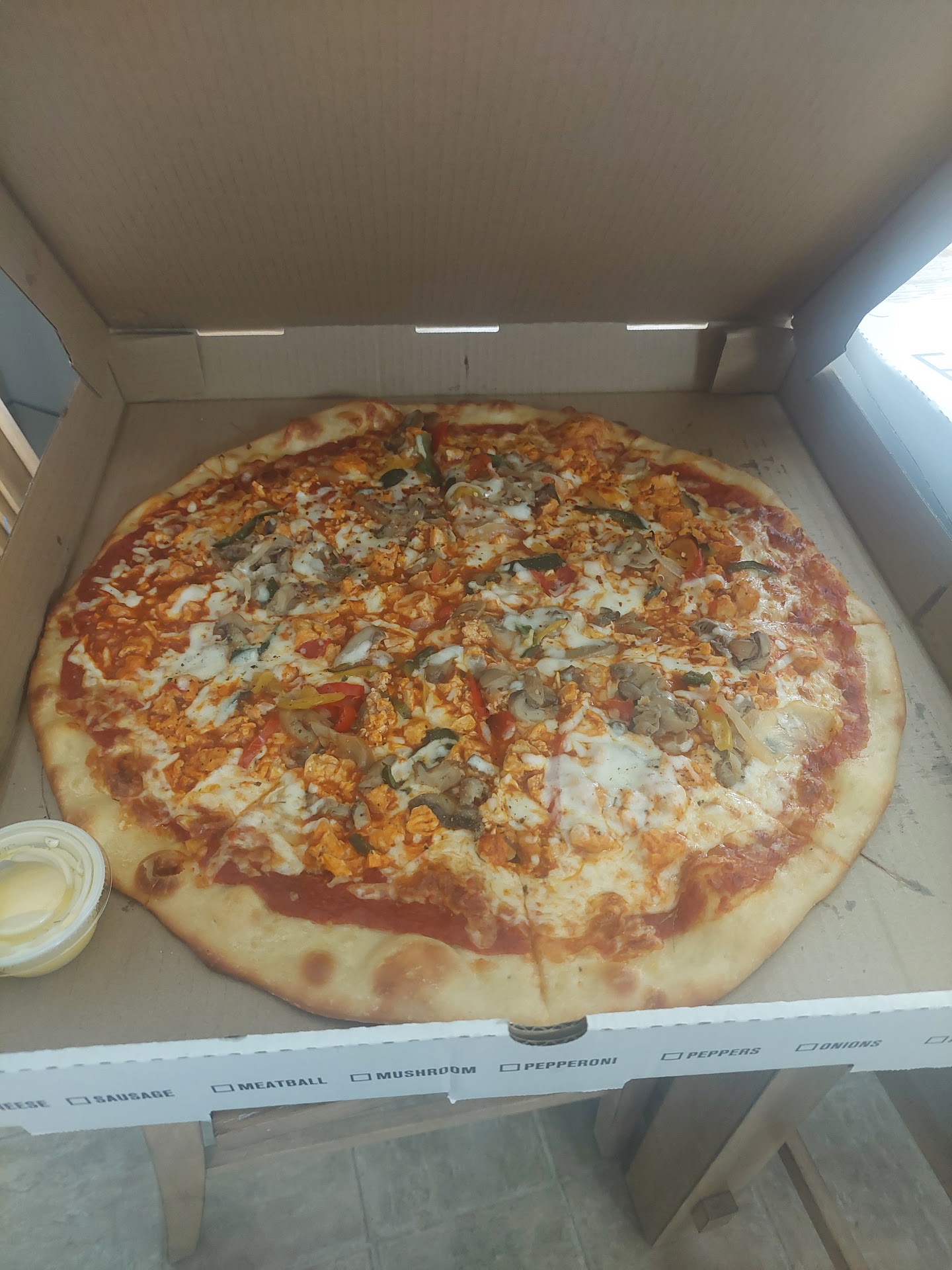 It's hard to find good pizza here in Fayetteville, NC, by my taste. I'm not a big fan of the Pizza Huts, Domino's Pizza, Papa John's, or The Marcos from around here, and I'm pretty picky. As soon as we walked in, we were greeted immediately. The establishment is nice. It's very clean on the inside, which is something I feel comfortable with. Mr. Barry was so nice and explained everything on the menu and the daily specials they had for the day. The pizza that was on display for "buying it by the slice" looked and smelled delicious! My husband ordered 2 18" pizzas. 1 pepperoni with extra cheese and 1 meatlovers with extra cheese. Both were delicious. It's a bit greasy, but that's pizza in general. The prices were about right for what we got. I'm happy with the purchase, and I look forward to next time. Thank you, Barry's Pizzeria, for a pleasant dining experience 😀🍕