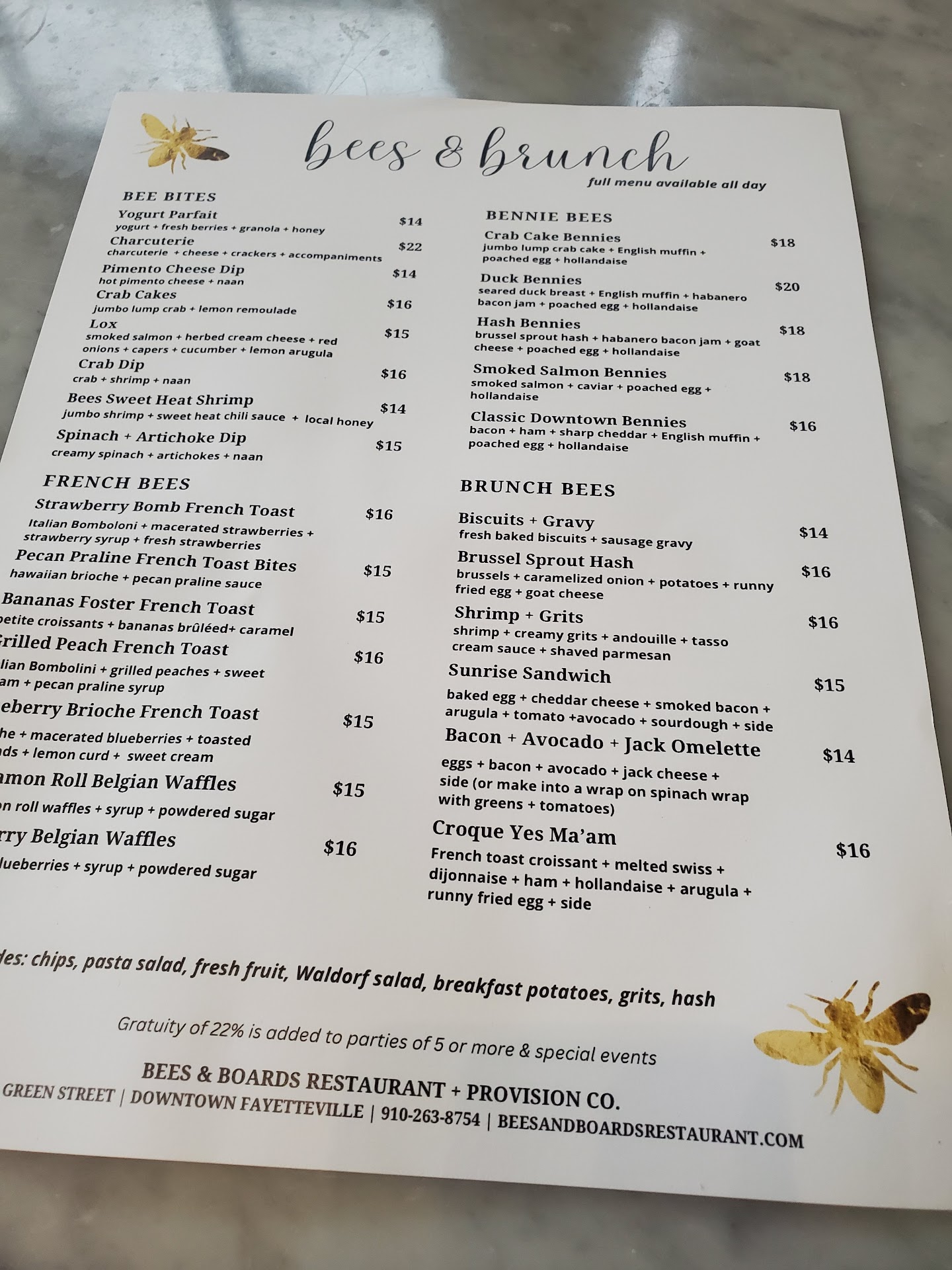 I have been wanting to try this spot for a while now and finally got there with the husband. Wanted to love it but sadly I did not. Got there close to 11:00 and it was about 40 minutes or outside seating. Not a problem because we would have wanted outside seating anyway, it was gorgeous outside. The fellow at the door brought menus out right away. We did not see a server for about 20 minutes. When she came to take our drink order we were ready to order our food. I had the crab cake Bennie and my husband had biscuits and gravy. When our food arrived almost an hour later my husband had asked the server for a little extra gravy….. that never came. When I had finished my meal and my husband was almost done she came to take my plate away and he asked her about the gravy. She said oh I’ll get that….and when he had finished his meal someone else arrived with it. At that time it was wasted gravy. My Bennie was fine but nothing I would order again. It said on the menu it was lump crab which it was not, it was canned crab. The hollandaise sauce was bland. The whole thing needed salt. My husband did say his biscuits were very good. After waiting another 15 or 20 minutes we had to flag down our server so we could pay and leave. We both had black coffee, which for plain old coffee was very good. Though we were not offered more coffee or more water while there. Breakfast is our favorite meal and we go out for breakfast almost every weekend. This is not a place we will go to again. The bill was 54 before the 22% gratuity pre programmed. Mind you my Bennie came with no fruit, no potatoes or anything. I have no problems paying good money for a good meal and we tip well. But this was just too much for “okay” food and bad service. There are so many other places that are great...
