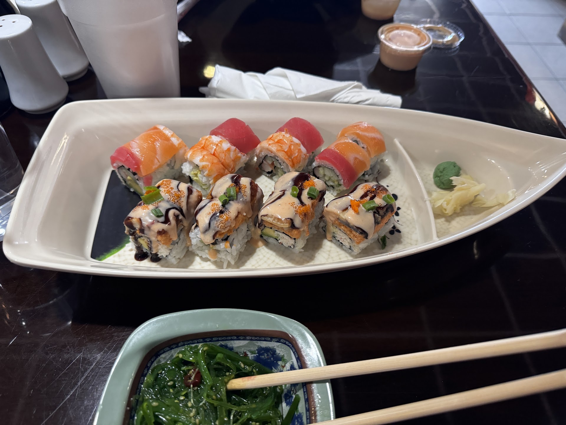 Listen, when I tell you that the food I ordered was AH-MAZING, bayyyy bay it was delicious! I hadn’t been to bento box in years. I actually forget that they are over there. My husband and I were hungry and was leaving the Harris Teeter parking lot, so I said let’s go to Bento box. When we walked in the atmosphere was quiet and there were plenty of tables available to sit at. Although we got our food to go. So I got the salmon bento box with mixed veggies, house salad w/ ginger dressing, and brown rice! I wanted fried rice, but bc my husband was recently diagnosed as a diabetic I have been trying my best to change my diet with him in order to help him make better food choices. I wasn’t crazy about the brown rice bc I am used to white or fried rice, but the salmon was cooked to perfection! I don’t like my salmon too soft. I like it to be cooked well. It was cooked to perfection! The flavor was delicious! The sauce was delicious! Bc we were trying to save a little money after spending a ridiculous amount of money at the Ft Bragg fair at first my husband and I only ordered a meal for each of us and said we would share with our son. However, when the meal came out and we saw how good it looked, both of us looked at each other like I don’t want to share this with NOBODY! LOL! So we ordered a third meal for our son. My son wasn’t crazy about it, but don’t go by him bc he doesn’t like Asian food. However, out of everything in that box he ate every bit of that salmon and the salad so that ought to tell you something! LOL! He is 18 years old and very finicky btw! The salad was super fresh btw!