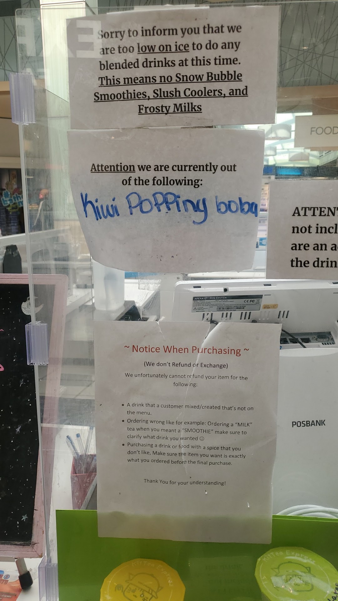 Read moreBubble tea is good which it isn't hard to mess up. The customer service is awful at this location. They are ALWAYS running out of things like ICE which immediately takes away half the menu and should not be something to run out of being that they only serve drinks. They close early and randomly in the middle of the day like yesterday which should have been prime business hours, yet 3 ladies were there, and they were closed. I went there and they were standing there so I asked if they were closed because the lady wasn't acknowledging me, and she didn't even look up just shook her head yeah. I think they need new employees to be honest. I would go to the location in Westwood plaza. They are always friendly and are open during posted...