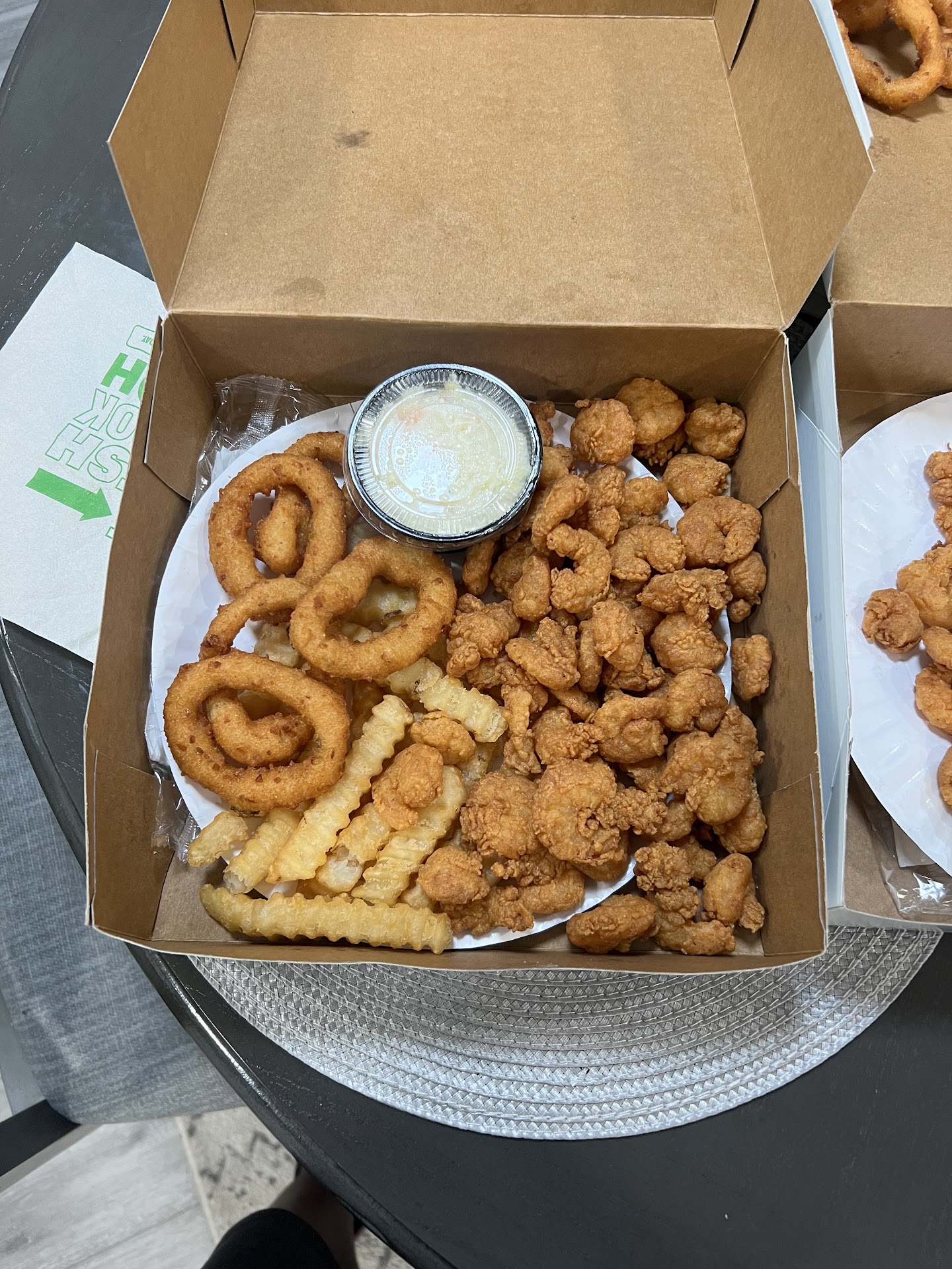 Read moreThis was my wife and I first time at Captain Jerry's. We often heard our friends talk about how good the food is at this restaurant, so while we were on the Cliffdale side of town we decided to get a to-go plate. Although it is a Wednesday night (not our typical fish night) we tried it anyway. We both ordered the small Flounder and popcorn shrimp. We asked the cashier "How many pieces of fish come with the small combination plate?" She told us 2 pieces. When we got our boxes and opened them when we got home, to our surprise we saw one piece of fish. It was fried too hard and lacked any meaty texture, it was all crunch!. The shrimp was decent. Overall, this place did not please us in appearance or taste. On top of that we paid $28.50 for our 2 plates. For this price I wish they would have at least given us our money's worth. We are on the fence about returning because we are taking into account that we did get takeout, and we did come on a Wednesday night which is not the best night for fresh fish. I will keep y'all informed of what happens when we sit inside to eat the next time we go. Sorry for...