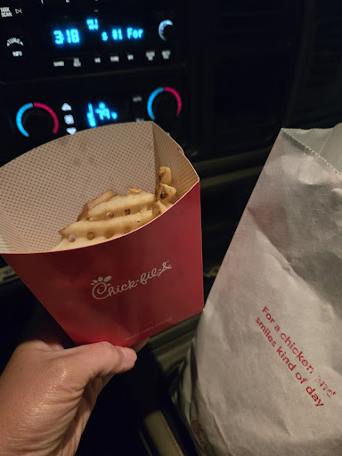 Corporate help this restaurant!!! To be brand new, this should be an embarrassment to come back like this!! This is my Chick-fil-A. It’s in my neighborhood is where I go every morning and I have tried to give this a chance three times. Every time I go, the fries are never salted& cold and my food is always cold. My nuggets are barely room temperature. The kids at Chick-fil-A are too busy talking and not working every time I come in the wait is longer than usual for Chick-fil-A granted but it’s bad enough that the food doesn’t taste the same that when you get it it’s not prepared correctly. It’s cold. It’s bland. It’s unsalted. The customer service has gone down. I’m really getting worried because I love Chick-fil-A and this is in my neighborhood please somebody rein it in over here!!! And the restaurant looks so gross and nasty through those doors. You would at least think they’d keep it clean knowing that our eyes are on it drive-through is gross. Never have I ever seen a Chick-fil-A like this...