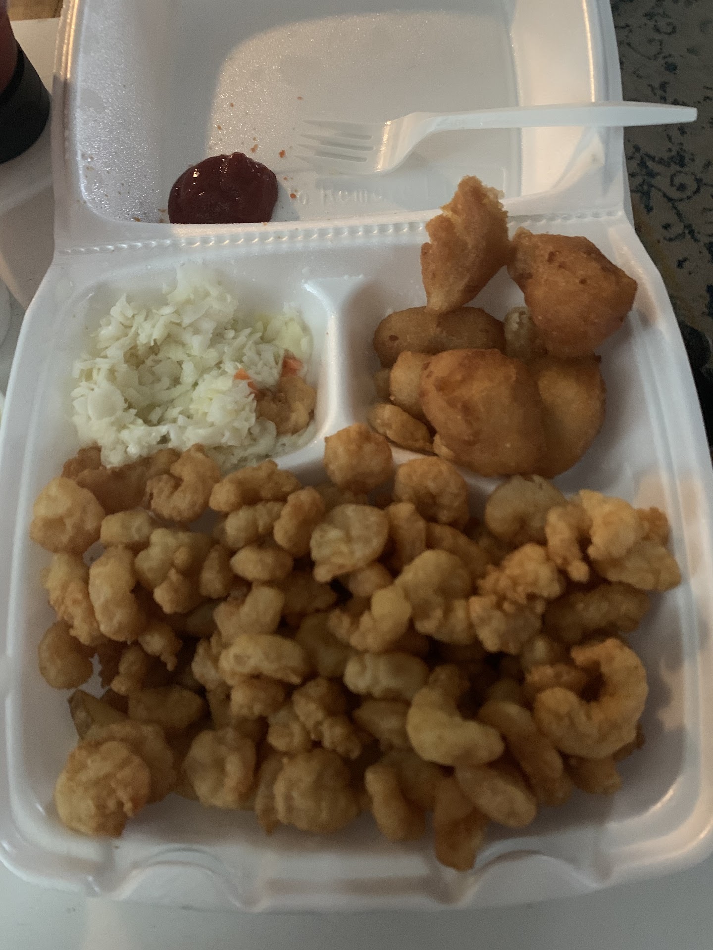 Read moreAlthough it seems like a good deal for food, you are getting bones on the fish, overcooked hush puppies and they use artery clogging oil! 100â Vegetable oil! Anyone with health issues beware! Plus the staff is rude to people! I can understand why! People work there for $7.35 an hour and get about 4-5houra for 5 day work week! Barely enough to pay for gas in your car to make it there! Unsafe parking lot, being the already have been robbed within the last few weeks during daytime hours! Customers had to join in the fight to pin the masked guy with bolt cutters down! Which turns our to be an ex employee who has been living next to the dumpster the whole time! I was just warn people to be cautious of your surroundings and be safe! Food is okay budgets soggy real fast! This place needs improvement but being that the employees are barely paid and have to do so much, it would be hard to believe they don't have the money for better security and a...