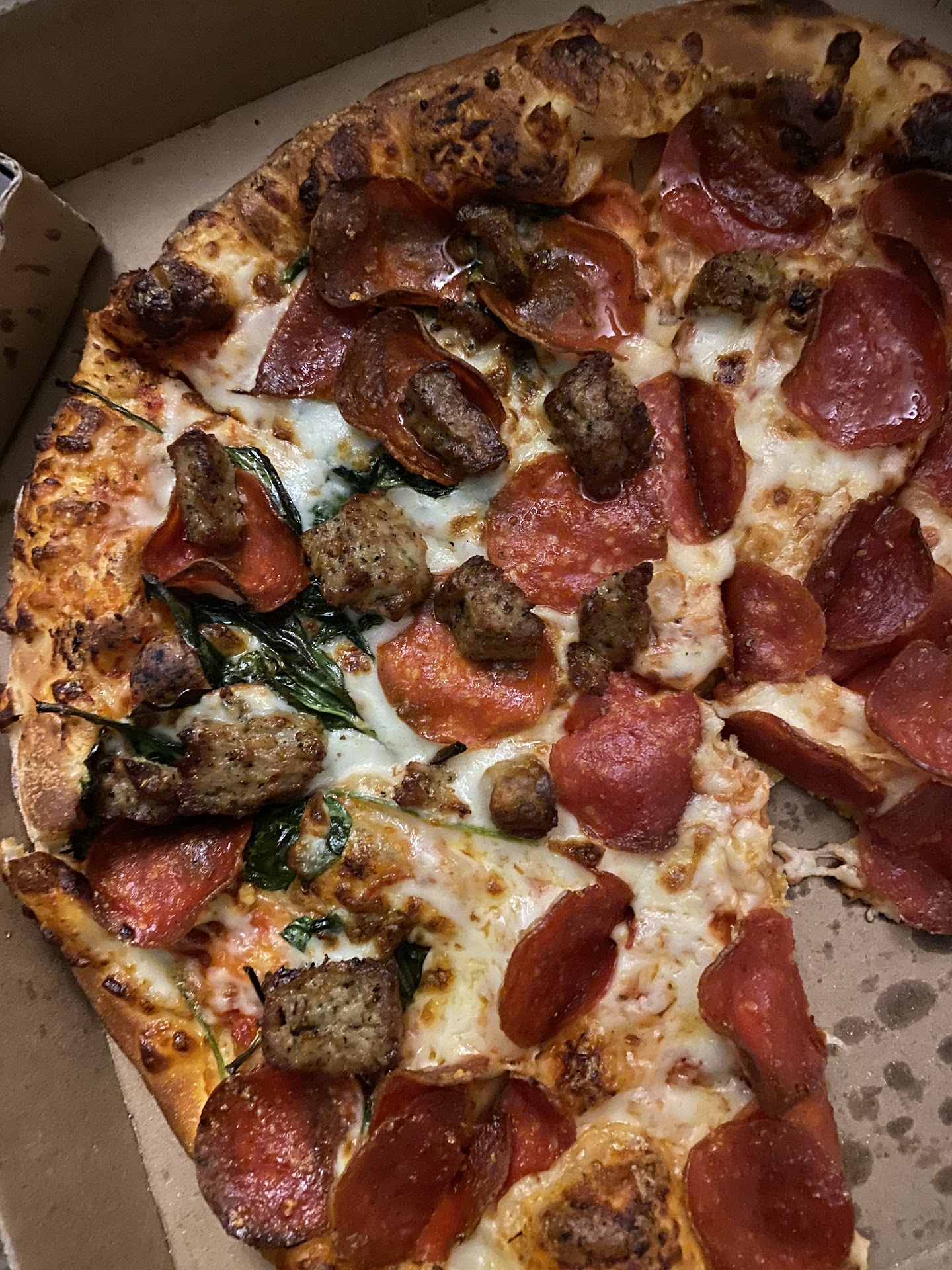 Our pan pizzas always came very wet, cold and raw, so we started putting "well done" on the "special requests"; it has made no difference. We usually order takeout because we're like two blocks away, but twice we've tried delivery, and we watch on the pizza tracker while our pizza goes all over uptown and downtown before it gets here, and it took nearly an hour and a half both times. The first time, the Philly steak sandwich we received had almost NOTHING on it, mostly just BREAD, looked nothing like the photo! So we called and they said they'd give us a free sandwich the next time. But we called ahead of time, let them know we would be ordering it, and they forgot to bring the sandwich entirely. So today, we waited an hour and a half for two raw pizzas and a missing sandwich. Today, I waited on hold for 20 minutes waiting to fix the issue before I was disconnected, had to call back and waited another 20 minutes; we were on hold 20 minutes waiting to even be able to tell them we were ordering the sandwich they promised us to make up for last time. That's an hour to even talk to someone to get the order done wrongly and another hour and a half waiting for that wrong order. I had to cook the pizzas in my own oven, which took time to preheat, another twenty minutes just to cook the pizza so it's edible! That's a total of two hours and fifty minutes! Nearly...