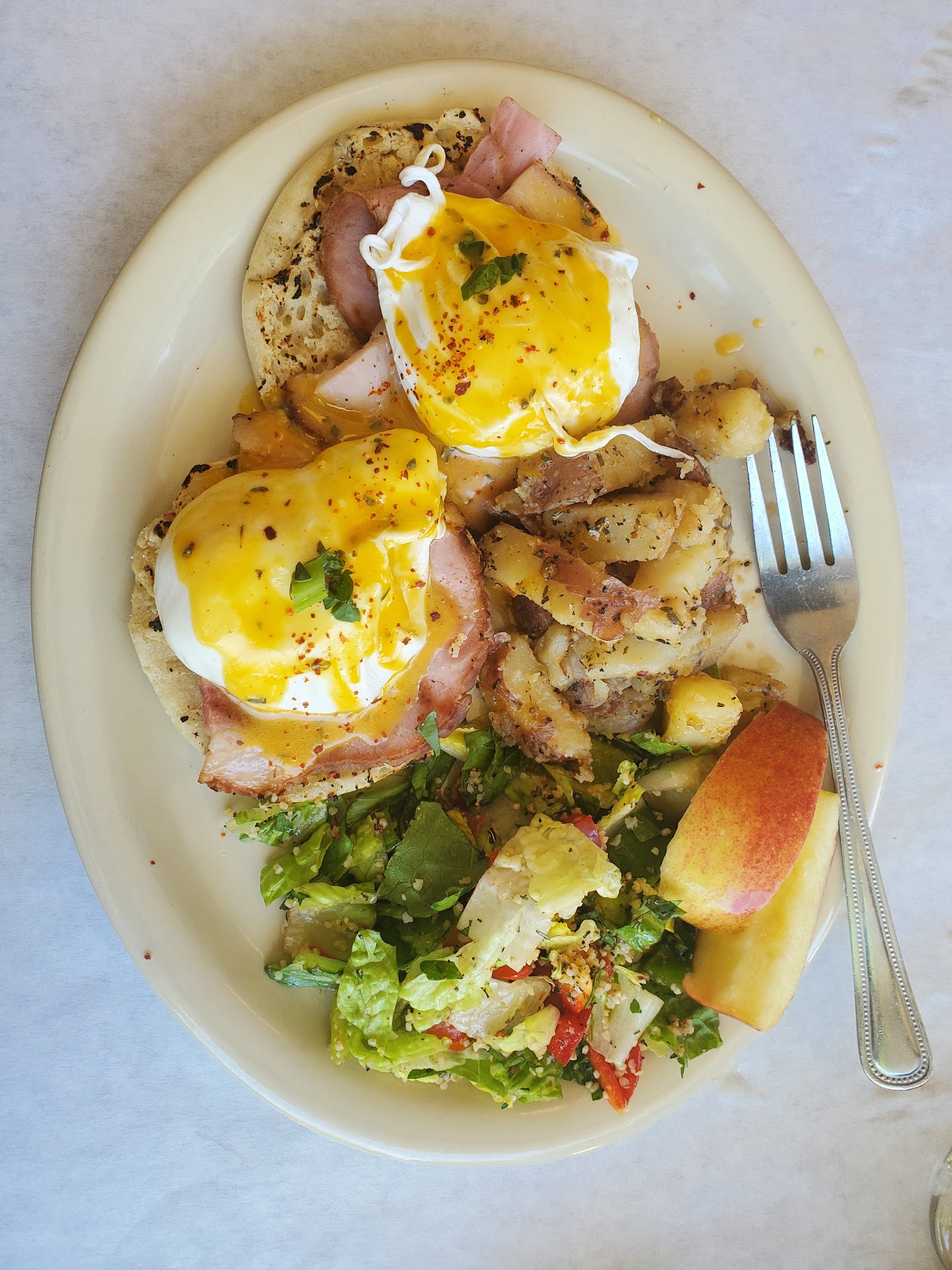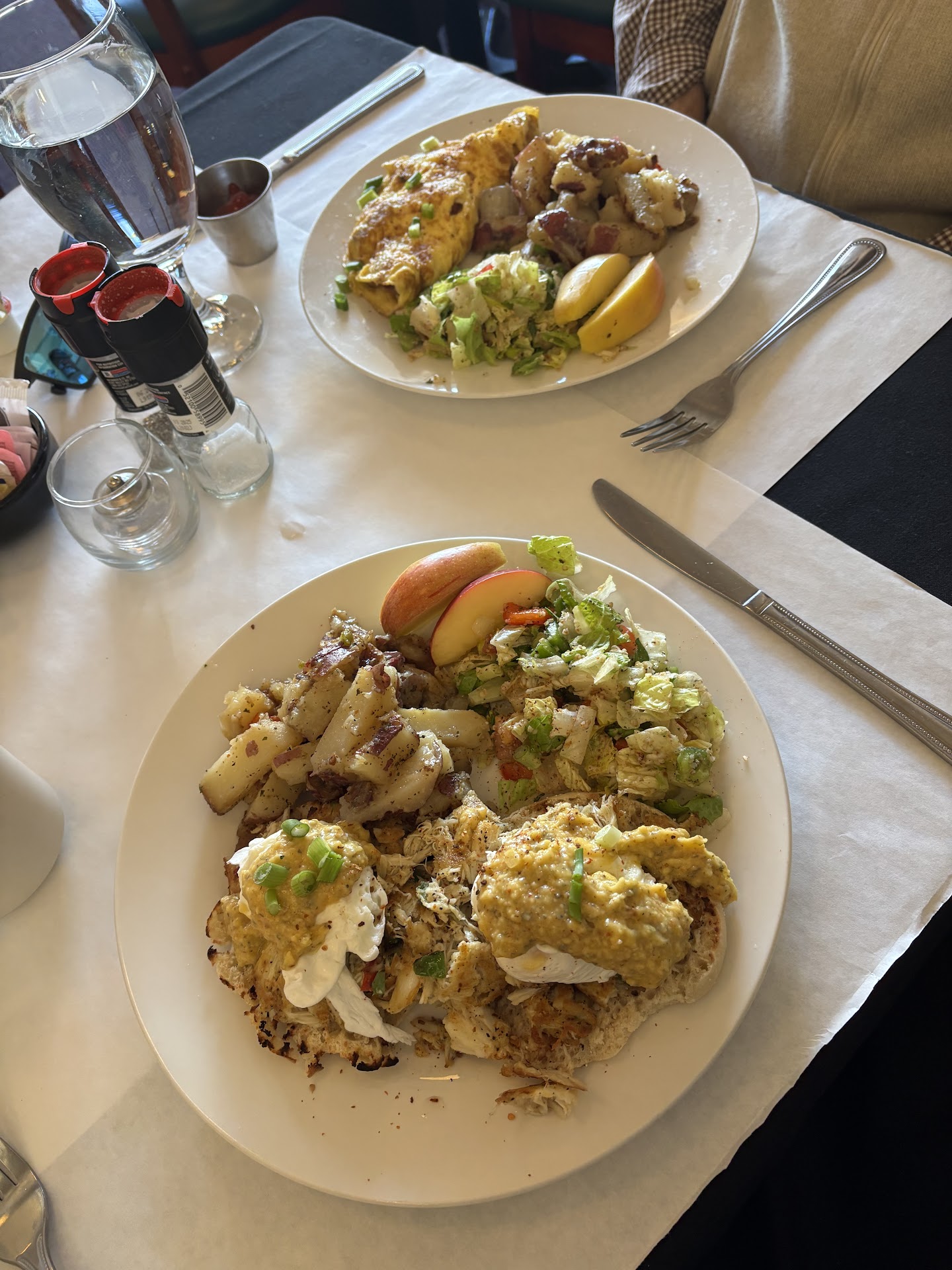 Well my review was deleted so I’ll try again. We walked in this morning about 9:15 and were greeted by an older lady who I’m sure was the owner. She asked us if we had reservations and turned around and walked us to a table, put down the menus and walked away. My husband ordered the California omelette which was very good. It came with potatoes, a little salad and cheap tiny sausage smoked sausage links because they were out of andouille sausage. I ordered the stuffed French toast. The bread seemed very dry and half was filled with the thinnest sliver of Brie and the other half did not have any brie on it at all. The blueberry compote consisted of five blueberries. They were out of the Andouille sausage and substituted it with the cheap smoked tiny smoked sausage links that we eat at home a couple times a week. We asked for a takeout box. The waitress boxed it and literally dumped it in the box. Everything was all mixed together. We will not go back. The atmosphere is not the way I want to start my day. Staff is not happy and we were never checked on. Both owners walked by several times and sever said a word. When customers left, the staff never said thanks for coming of...