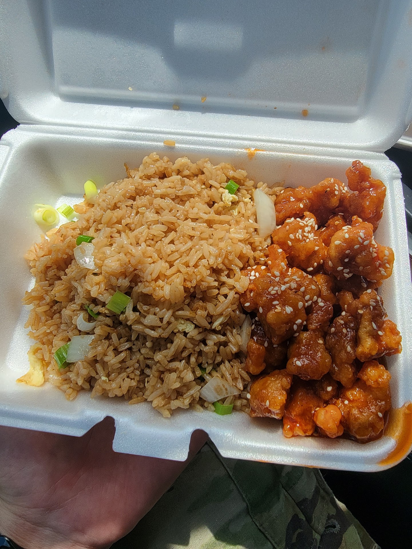 Read moreTHIS IS A LONG DETAILED REVIEW. Very small serving sizes, they did not fill my whole plate. I asked for sesame chicken with a side of rice. I got an order of rice with a side of chicken instead. Chicken was very dry stringy and tough. You know the kind of chicken I am talking about from a Chinese restaurant.