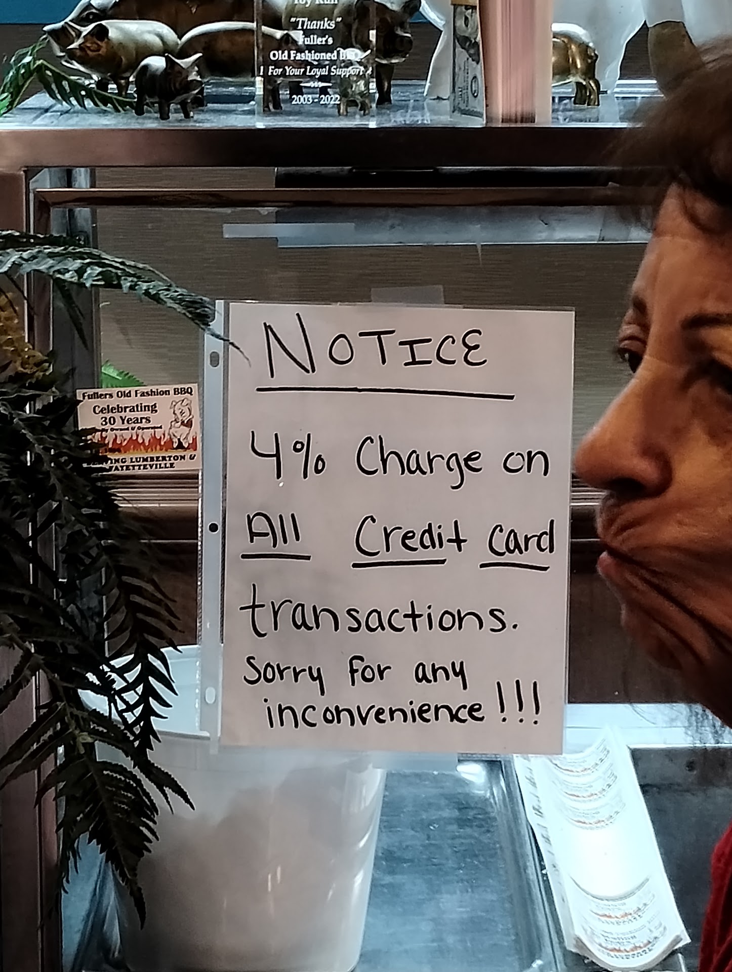 My husband and I just moved to the area and saw the big sign on Fullers "BBQ - Seafood". How enticing is that? BBQ and seafood! I'm going to call that nearly false advertising. Yes, this restaurant features bbq sauce and there is fried fish and popcorn shrimp... But the description "seafood", definitely makes me think a restaurant will actually be serving a variety of seafood! As of now - end of April 2021, they are no longer serving food cafeteria style (even though they haven't updated their webpage). It's buffet - self service - wearing a mask and polyurethane gloves (full of microscopic holes, so actually not medical and pointless... But we understand that they have to make an effort).