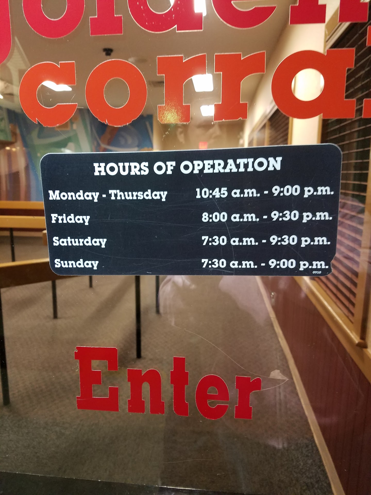 First we tried calling a few times only to be hung up on by the machine and I couldn’t get ahold of a person. Then we decided to head over and ask in person if they had HFCS in their items and if so which ones so I could avoid them (as it makes me severely sick) they told me to tell them which item I wanted to check on and they’d go check an item at a time and couldn’t tell me which ones had it in there. I opted to maybe avoid the sides and go for the meats figuring I’d have a better chance of not getting sick when I was met with disaster two. I have a condition called POTS or Postural Orthostatic Tachycardia Syndrome which is a fancy way of saying if my posture changes my heart rate shoots up. This causes me to faint. I was content to have my roomate’s bring me back a plate from the Buffet and asked someone nearby if they had any type of menu for me to know what they have (since I can’t walk around to look). I was told by one of the staff that they didn’t have a menu to look at at all and that I’d “just have to walk around and look myself” (mind you I have use of both a service animal and a cane at this time).