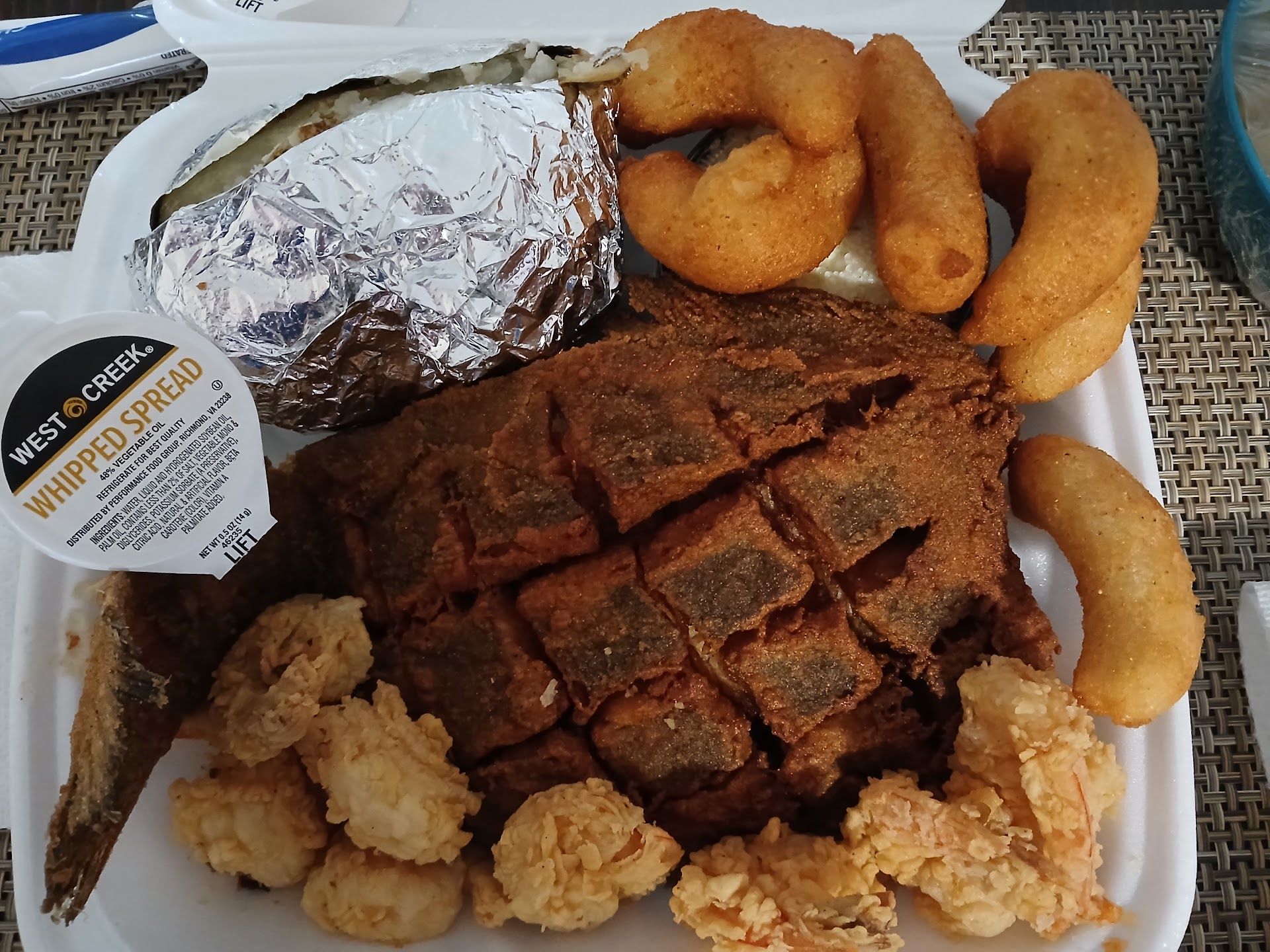 Read moreAs packed as the parking lot appeared to be we just knew there would be a lengthy wait however as soon as we walked in the door the hostess showed us to our table, our waitress Anna was very likable and professional which is why service got a 5 star rating on top of providing our entrees in an amazing speedy time! However the food... I had heard great feedback about Hudson Bay's meals but I must say we all were displeased, I chose the catfish and shrimp combo along with a baked potato and honestly if it wasn't for the texture of the food I could NOT tell the difference in the fish and the shrimp! It was totally bland as in tasteless with zero flavor, my wife and father in law happen to agree the exact same with their meals as well. Sadly the only enjoyment we got out of our meal was the hush puppies and the baked potato. We won't let this discourage us, we'll have to return someday and see if it happened to be just a bad day for the cook or preparedness of meals, hopefully the change will greatly...