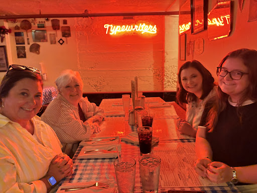 The location is very very small, and you do have to navigate some steps to get down into the subterranean level that the restaurant occupies, but if you can maneuver through the maze of close knit tables and make your way to the restrooms without stumbling into someone else’s spinach dip, then you can do Hugo’s. The bar which runs the entire length of the restaurant is a great location for the casual solo Diner, but you can score a home run. If you catch one of the tables underneath the glass block sidewalk that doubles as one of the only sources of natural light in the location. Or next to the back table near the A4A mentioned typewriters neon sign.