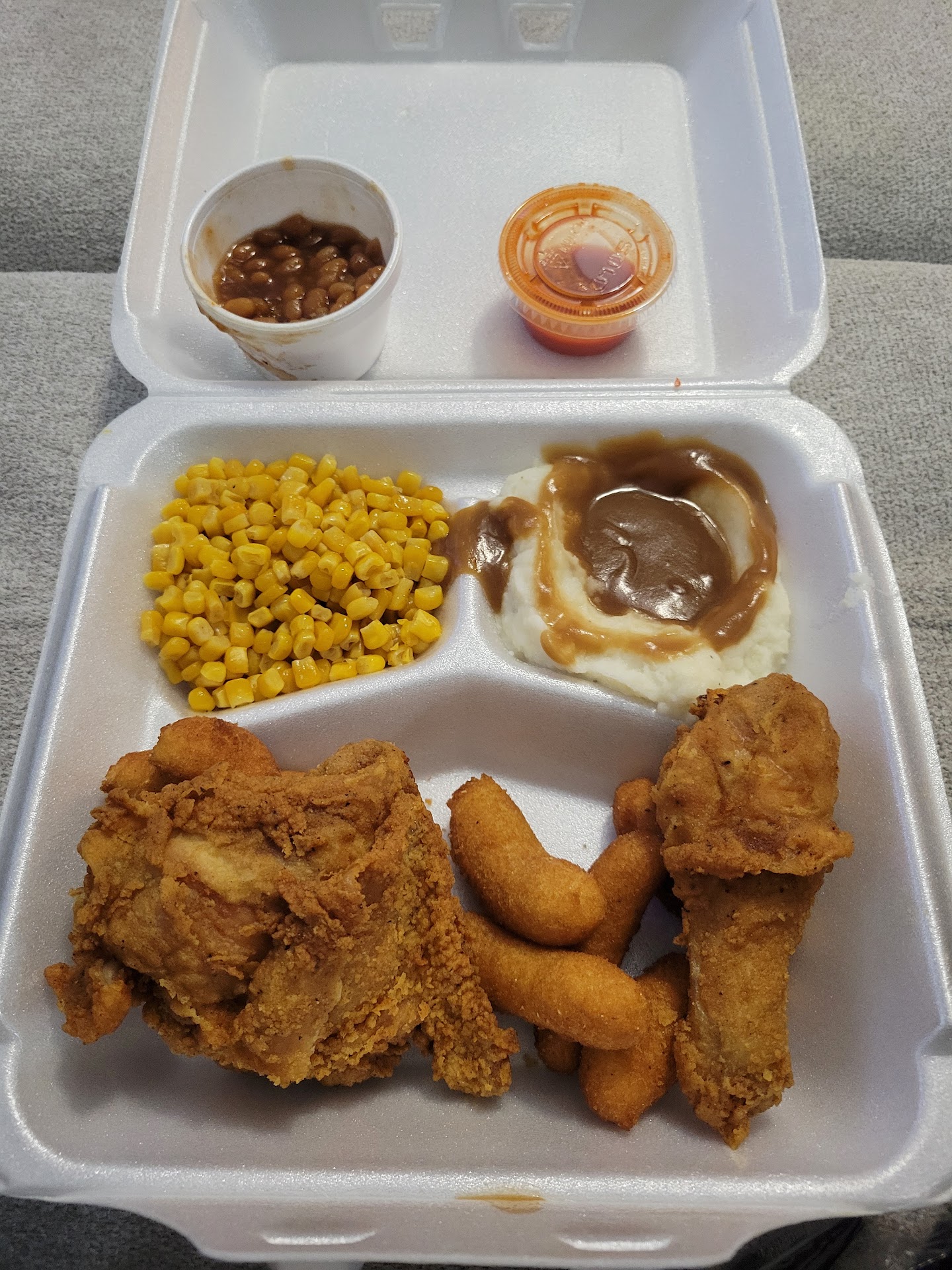 Read moreI just left Johnny's and did not want to get out of the car. I went through the drive through and ordered an 8 piece family pack with 2 sides. I asked for dark meat only and told the young man that I do not want any breast. He informed me that they only had 5 dark pieces and they could substitute the rest with wings or I can wait 15 minutes for more dark pieces to be cooked. I decided to take the wings cause I was ready to get home. He handed me my sides and then the chicken box. I asked again if there was no breast in the box and he says to me that he checked it himself. I decided to check the box before I pulled off and I'm glad that I did. The very first piece in the box was a breast. Then it was only seven pieces in the box. It had 1 breast, 1 thigh, 1 leg, and 4 wings. He acted surprised although he obviously lied about checking the box. Afterall, It is a chicken place so I know everyone in that restaurant knows that difference between a breast and a thigh. I do not like being taken advantage of especially when I have paid you for my food. I ended up having to wait for fresh chicken to be dropped anyway. I hate situations like this because you don't know people now a days and when they are cooking your food they may have an attitude and do all sorts of ungodly things. Any-who, I prayed hard over my food, as always. I must admit that the fresh chicken was pretty good. The sides...