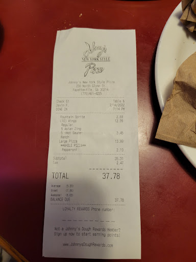 Ā Ā Ā Read moreIām not the type of person to complain normally but the so called customer service that was not received at this establishment was completely and utterly ridiculous! My fiancĆ© waited 20mins for a freaking side salad! My friends and I were completely dissatisfied with the amount of time it took to get food items such as garlic bread which never arrived to our table and I requested to be taken off! After 45mins we finally received our pizza and wings! 45mins! Several other customers who arrived after our party had received their orders and were leaving at this point! My friend request to speak w a manager at this point one of the young ladies says she get the manager 10 mins go by and no manager! We request from a second waitress to get the manager finally a young lady who appears to be 16 comes over to our table, clearly not the manager but what ever!! We begin to tell her as to why weāre disappointed in the service she ask what she can do? We tell her our server hasnāt been back to our table for 25 mins no one has received refills at this point and I asked for a to go container we tell her a compensation for the order is expected! She says sheāll see what she can do. Our waitress returns to the table with the bill w a 10% discount which is damn near comical to me for the piss poor service my friends, my fiancĆ©, and I received! Oh and still no refills and have not received a Togo box! At this point I ask to speak to the manager and express my outrage without raising my voice of course I have work fast food for several years and been a manager so I would never be disrespectful. She ask me to hold on for a min. A few moments later a guy is sent to the table and ask how he can help? I ask are you the manager?! He replyās no. I said you can help by getting the manager we have requested 4 times now! He proceeded to tell us they donāt have a manager! Long story short he tells us there was nothing he could do heās only been there three days! I was so compelled to walk out an front the bill to Johnnys Pizza but Iām not that kind of person. However I can say I will never waste my money on poor food and bad customer service at this location this was my first and last time eating at Johnnyās Pizza! Next time i wants Johnnyās itāll...