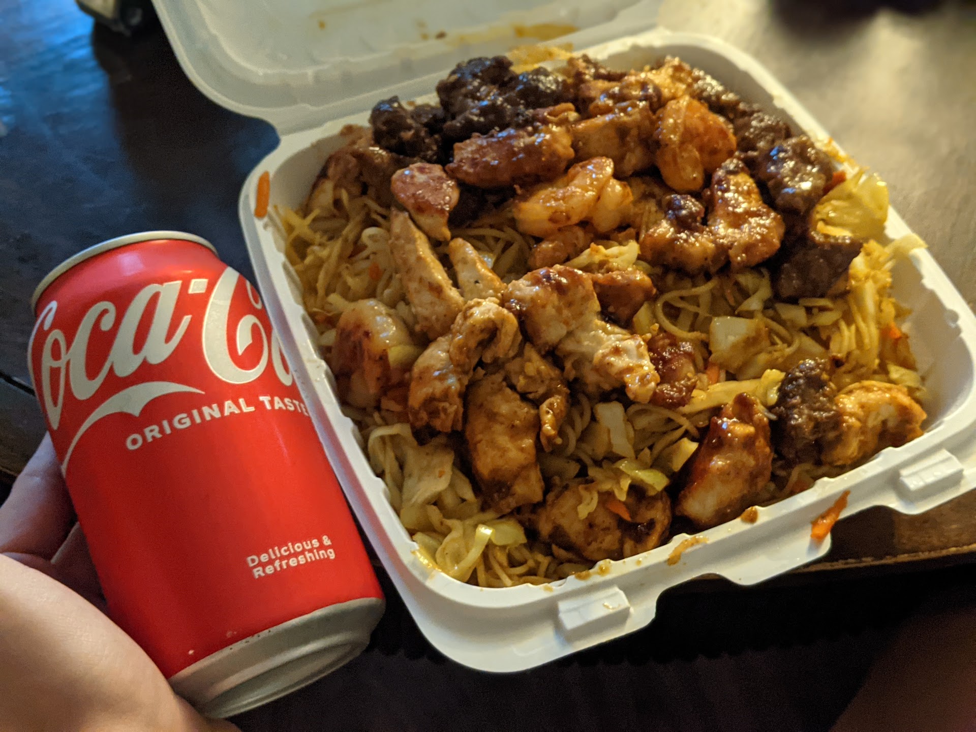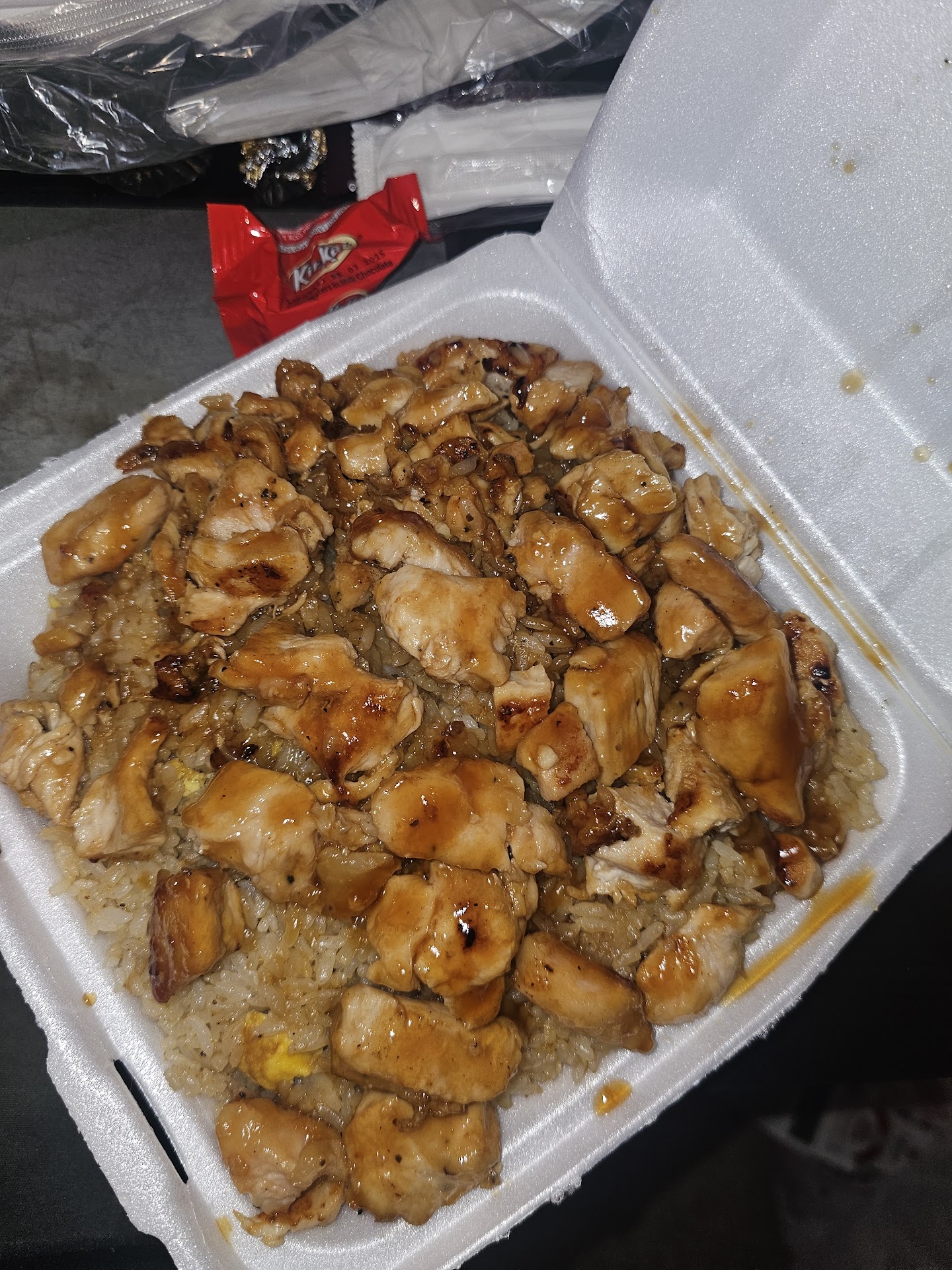 The food wasnt very good. my noodles (that had chicken and steak) tasted super fishy and were pretty gross. I only ate them bc i was starving, then warming it up later as leftovers I couldnt even stand to eat it. however, the fried rice, gyoza, and yum yum sauce were good. The workers were pretty rude. Not friendly, acted annoyed, and when i asked for more soy sayce they were lowkey judging me. The guy literallly said "you need MORE soy sauce?!??!!" Like yes thats why I asked......dont need the attitude. I highly regret tipping them now.