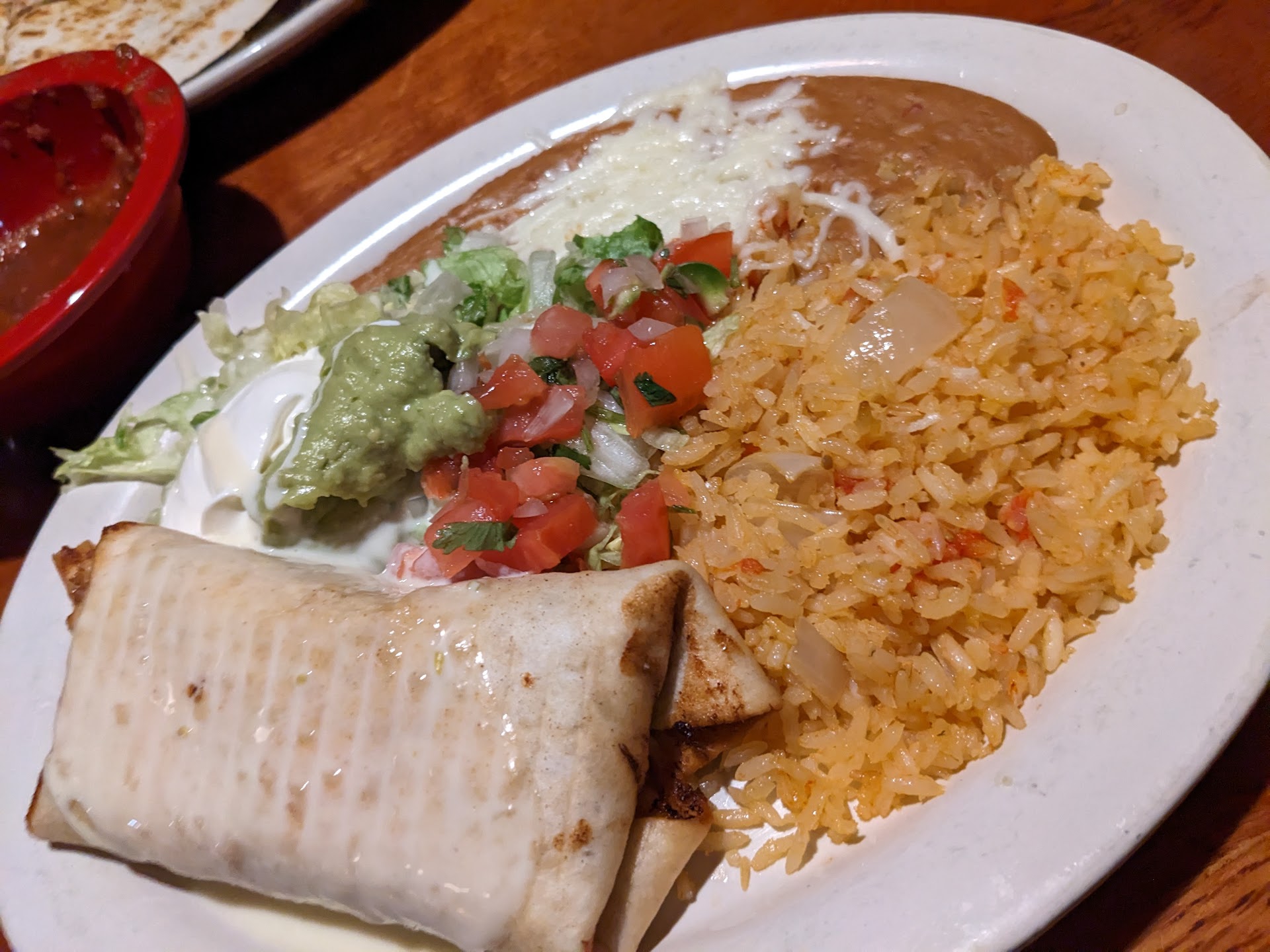 I've been in this area for 20 years and this location has been tried and true consistent. My first visit here was in 2004 and I've received nothing but good food. Nachos are served complimentary with a mild and delicious salsa. Queso on demand. My own personal favorite item is the Quesadilla Fajita de Cameron. The tortilla is crispy, the shrimp is tender and doesnt taste fishy. The rest of the ingredients taste fresh besides the refried beans of course- but they bring their own personality to the dish. The lettuce, tomato (pico) guac and sour cream, beans and rice are separate from the dish so you can add them to taste. You WILL need a fork for this dish. Portions are large and typically require a to go container but this varies based on appetite and dish. Service is good and during COVID-19, dine in is currently available with booth seats and the servers attentive...