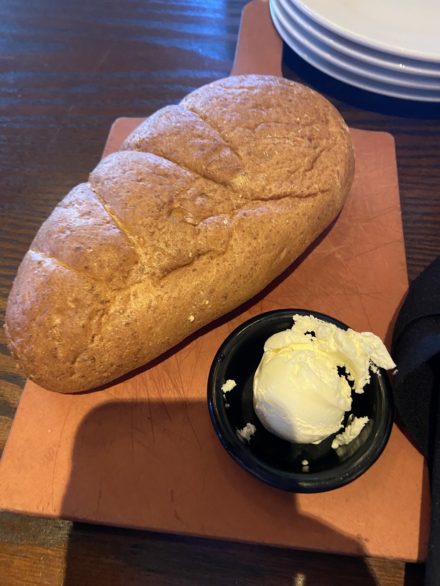 The free bread is basic. It’s whole wheat and the butter is the only thing I have a qualm with. It’s refrigerated, which is great that it’s appropriately stored — but it makes it extremely difficult to spread, especially when the bread itself isn’t particularly hot. The butter does not taste salted, which isn’t a bad thing. Just something to mention. There’s also no special flavor to the butter.