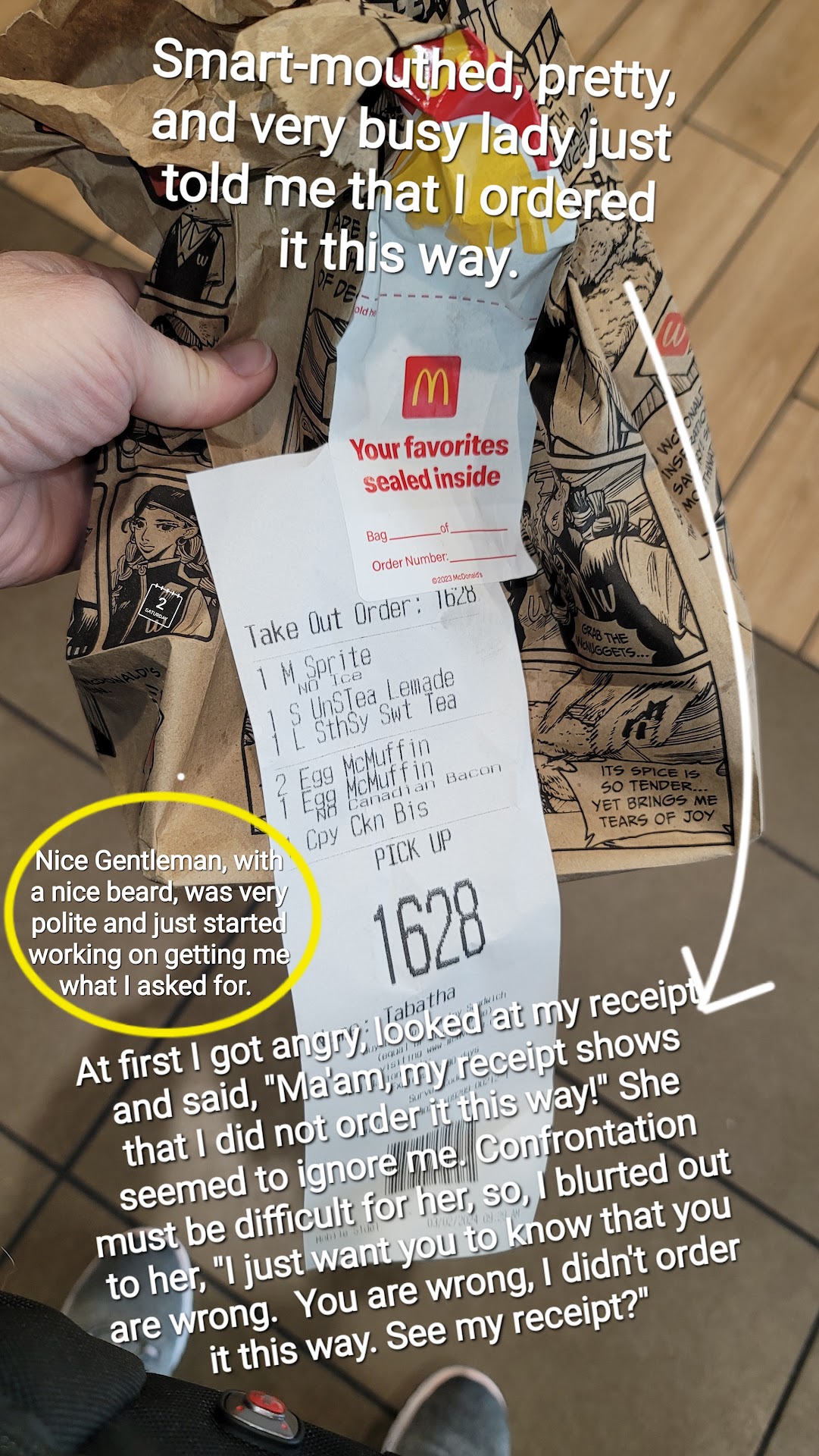 The manager on duty basically accused me of stealing sweet tea when my receipt showed that i had paid for a large soda. However, I'm not the one that changed it to a soda, the gal at the counter did when i paid cash for my drink. This manager was so unprofessional and obnoxious that two older gentlemen (that didn't know each other), waiting for their orders interjected because they had heard the discussion between myself and the cashier. After taking my money, the cashier began filling straws and lids, so it was easy to let her know that the sweet tea dispenser was near empty and i wasnt sure that there would be enough to fill my cup and she kindly replied "thank you for letting me know and if it runs out on you and I can finish filling it at the dispenser in the drive thru". Before I could say thank you, a woman behind me says, (which upon turning around, i recognized as a shift manager, "well you get what you pay for, that's sweet tea and you ppaid for a soda, if you wanted tea, you should have paid for tea, and people wonder why we have to keep raising prices". I have never taken anything from a restaurant that I haven't paid for or that was given to me, and if I were going to stoop to the level of stealing, I can assure you that it wouldn't be a dollar beverage from a fast food chain! I was completely embarrassed and humiliated. When the manager heard the entire situation, she never apologized for her action, but instead gave me a second large sweet tea for the "confusion". I guess the standard has become "the customer is never right" because employees are able to treat customers however they choose to. Back when i workes at McDonald's (in the late 80's), we were held to a much higher standard and a manager would have been terminated for speaking to a customer in this manner. The way she reacted you would have thought that one cup if tea would send McDonald's straight into banckruptcy. Which became even morw confusing when she handed me the second cup of tea! I would have submitted a complaint to the corporate office had i known her name, but probably for reaaona like this, ahe wasn't...