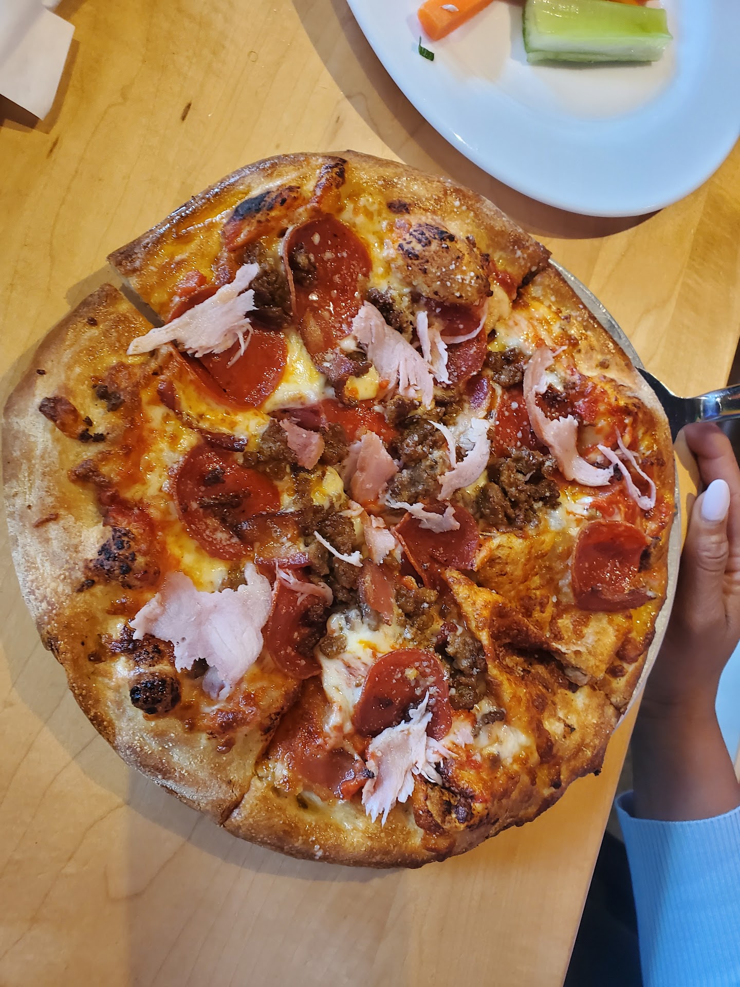 If your vegetarian, vegan or allergic to anything I DO NOT RECOMMEND going to this location !! This location is completely awful. I used to work here and the people are completely unprofessional. There’s this girl name Christina and a manager named Guillermo. It's Spanish for William. Who are very close with each other. I witnessed a salad being sent back because the guest didn’t wanted shredded chicken on her salad and all Christina did was pick off the shredded chicken keep in mind there was STILL chicken on the salad and they still sent back the same salad to the table. When she was supposed to remake the salad according to policy she just half fasted it. The manager saw this and didn’t say anything or corrected her. They cook everything on the same stove so if your allergic to anything they don’t work with you. They cook the veggie burger, Tempe, exc. ALL ON THE SAME STOVE with the same spatulas. The same manager Guillermo always witnesses Christina eating food straight off the cooking pan, toppings for the pizzas, even the food that’s being cooked straight off the stove, everything in the back and NEVER sanitizes the area or their hands AT ALL. So their touching food in the back and eating all at the same time and not washing their hands or even getting a new pair of gloves. Christina even makes her self food when there’s meals that need to be sent out to tables and NO MANAGER SAYS ANYTHING SPECIALLY Guillermo. She always makes orders wrong and sends them out anyway with the mindset that the customers won’t care or even pay attention. The manager never say anything about that either. He witnesses everything and is fully aware what she is doing and what’s going on. Never corrects her. He just goes to the other workers and says not to do what Christina does cause that’s not the right way but never tells her that in person. Christina and Guillermo ALWAYS talk really bad about the food and customers in Spanish. ALWAYS. They complain when food is sent back to be corrected when they messed it up in the first place. They talk really really bad about the customers. Nothing is fresh. EVERYTHING is bought at a food lion. None of the ingredients are fresh ingredients. Your getting completely ripped off by their prices for a meal you can make yourself. Specially with the people in the back eating straight from the cooking pans, even wings that come straight out the oven NOTHING IS SANITARY. They don’t clean the pans or the spatulas after making batches of meat/food so your definitely getting your meal with a mixture of everything that has been cooked throughout that whole day. Nothing is clean. Do not go here. I strongly recommended going to a different location. This one is just completely unprofessional and the food isn’t worth the wait. Mod Pizza is ten times better then this place and the food is fresher and...