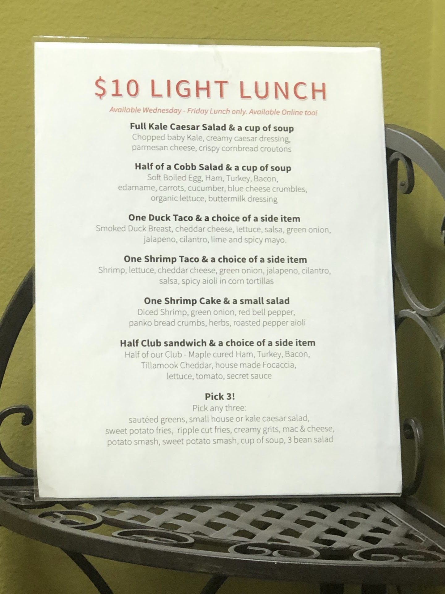 An absolute gem. The food is excellent. In one weekend we showed up without any reservation, and the waiting line was huge. We could not get a table that day. The front desk lady told that they take reservations, except on the Sunday. Next time we made a reservation and hit the place for our Friday night date dinner. The place was fairly packed. They have an outdoor patio seating option too. We chose to sit inside. The indoor environment was cozy and cool. The server lady was very nice. She gave us suggestion on what to eat. The house lemonade was great to start with, on a sunny hot long day. We skipped the appetiser and jumped into main course. I took the fried chicken which was supposedly the most famous dish from their kitchen. It was terrific. Usually chicken fry means greasy big chucks of ‘southern’ delicacy that comes into our mind. This was so different. This was not greasy. It was lightly battered, absolutely crunchy outside and juicy inside. It came with some cheesy mashed potato and green leaves. Greens were essential to balance the taste with so much fried and cheesy stuff. My husband ordered the meatloaf. That was too good. The portion size of both the dishes were right. It’s neither tiny nor humongous that you have to carry the left over. We ordered a slice of mockingbird pie to finish the meal. The dessert was excellent. It was a layered pie with perfect amount of sweetness. Overall the entire experience was awesome. I highly...