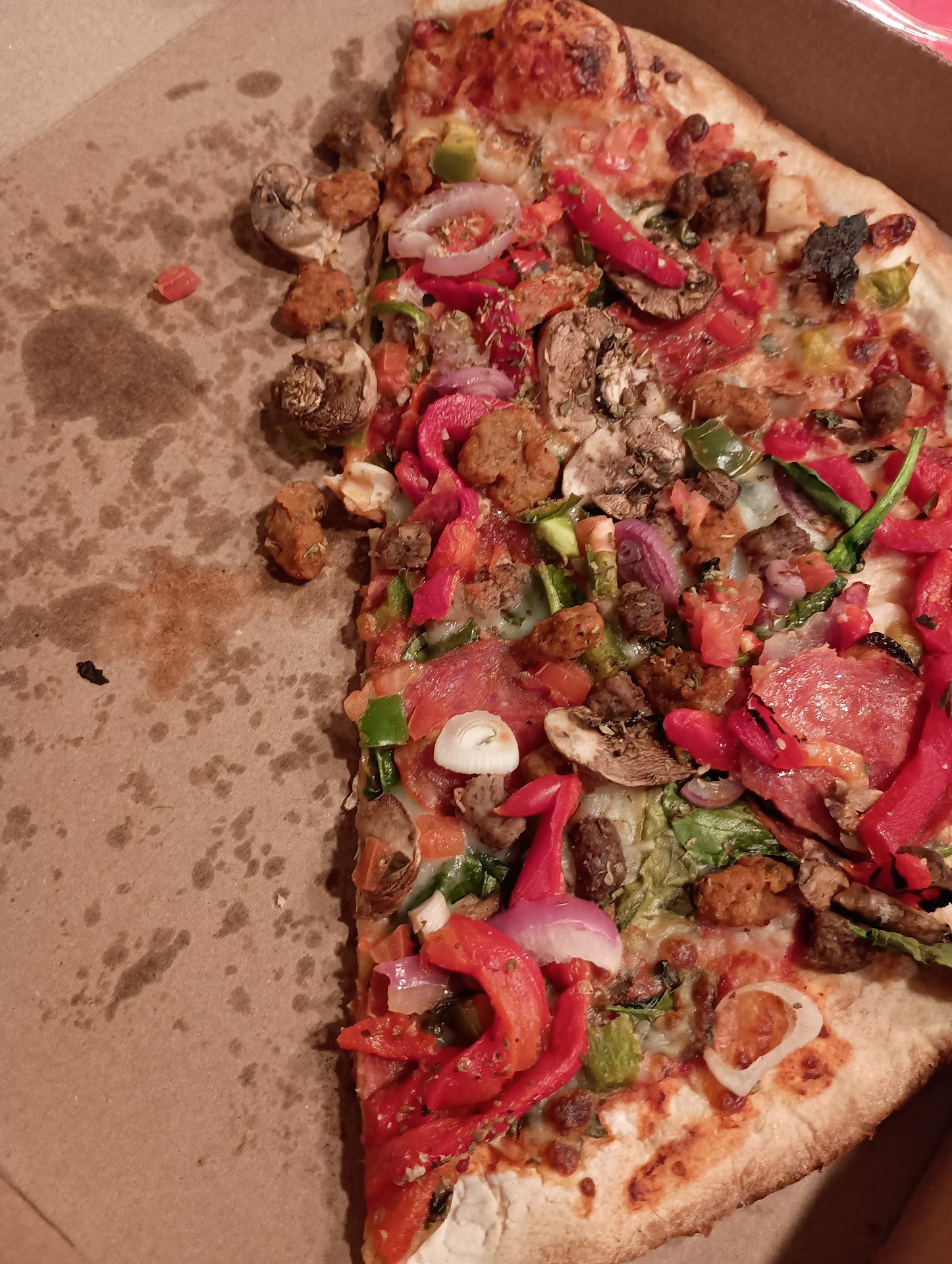 Needless to say I was already very upset, but tried to let it go until the pizza came- razor thin and sopping wet. It was disgusting, clearly not a thick crust. I was going to take a photo of it to include, but unfortunately it didn't survive the ride home, and the photo was just of a jumbled mess of damp ingredients.
