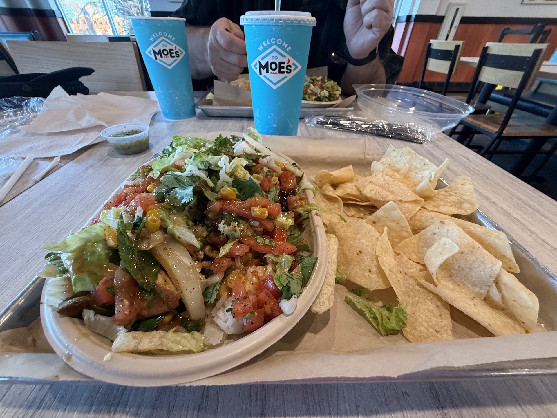 Read moreThe only positive things that I can say about my experience was that there was no long wait and the food was reasonably decent. There were three people working and none were very nice. I ordered the grande homewrecker and was very dissatisfied at the amount of ingredients that the workers were putting on it. It was just tiny bit of this and a tiny bit of that and when I asked for more I was told that it would cost extra. The lettuce was wilted and when I asked for more I got about 10 more slivers. I only wanted more I know because when it gets warm it practically disintegrates. The most that I usually go to in my hometown would never charge me for extra but I never had to ask for extra because they always put a sufficient amount of ingredients. The price was absurd. It was almost $18 because they charged me two times for queso on my burrito when they're two helpings didn't even amount to the one helping that I always get at other Moe's. I was very disappointed. I will never go there again and I will tell all of my professional friends and coworkers to not visit this location! Changes need to be made...