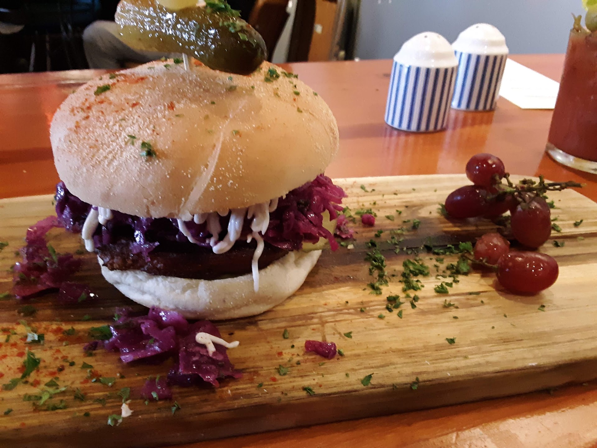 As for the food itself, you could tell it was clearly rushed by that point. I ordered the BAE egg sandwich. I think they forgot the basil-mayo entirely, my bacon was cooked just enough to avoid bacteria but was otherwise chewy and clearly undercooked, the eggs were actually overcooked and dry, and I had a single slice of tomato that barely covered even half the sandwich. My husband ordered the Hangover burger. I'm not sure how his food was other than he described it as being "meh." We were so hungry when we walked in you would think anything would taste good at that point, but unfortunately it was about as quality as the "service" we received.