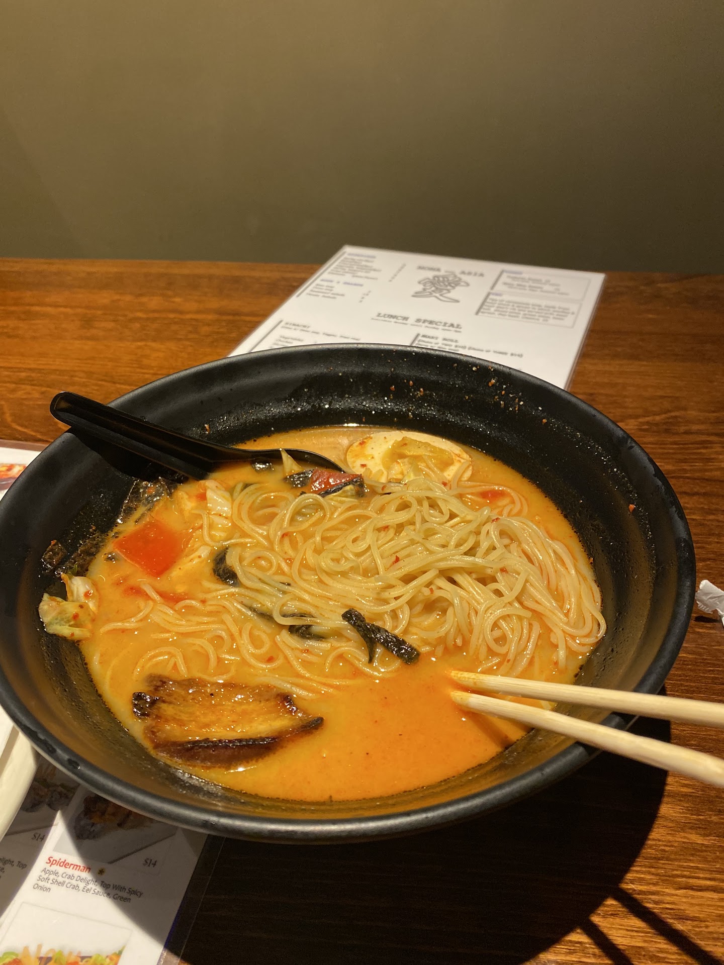 We ordered the Fried Wontons and Gyoza appetizer, on point like always. Nice and crunchy and flavorful. I wish I knew what exactly was on the sauce they give with the fried wontons because itâs amazingly delicious.