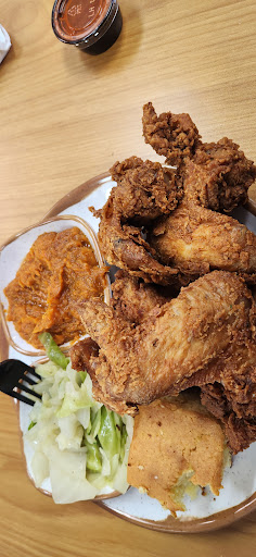 Ā Ā Ā Read moreIād rate 4.3. Almost gave 5 star. Young people working front gave good customer service. When you have specials, itās good to put customers on notice and maybe a quick menu rundown for first timers. Ordered 3 plates to try their cooking. Pork Chops, Mashed Potatoes, Rice were A1. Mightāve been the best sweet cornbread Iāve ever tasted. š„. Some people may prefer more country less sweet bread but it was perfect for me. The okra stew was Southern and fresh-Iāve had better but Iāve certainly have had worse so this stew was good. The cabbages had a pickle juice back taste. They werenāt totally bad, it was giving a pickle vibes just a tadā. I closed the box then came back and my second taste confirmed. Turkey wings decent but gravy tastes store jar bought and added to Turkey Wing. I asked for Fried okra on my second plate and the girl gave me okra stew. I shouldāve checked the box-My girl hates when I donāt check. I also asked for green beans and were given black eye peas with green beans. I have black eye peas. They tasted southern but they were a bit salty. The rib tips, beef and Mac didnāt look all that great so I passed. The dressing was ehhh, Iām so used to my moms Dressing. My moms dressing from Albany GA is sent from Heaven. This dressing just wasnāt rich and layered, it tasted quick/few ingredients. The fried whiting was great. Thin slice of cake $5 should be thicker-tastes great. Food boxed well in quality vented box. I spent $60 + $7 tip for 3 big meals and 1 dessert no drink. Iād come back here to try more options and recommend-I like the ability to see the sides because you can see what looks most appealing. Hard to find good Soul food so I appreciate yāall. Seems like family working establishment very clean thatās why I wanted to give 5 star but that fried okra and green beans I asked for wouldāve sealed the 5star vote for the...