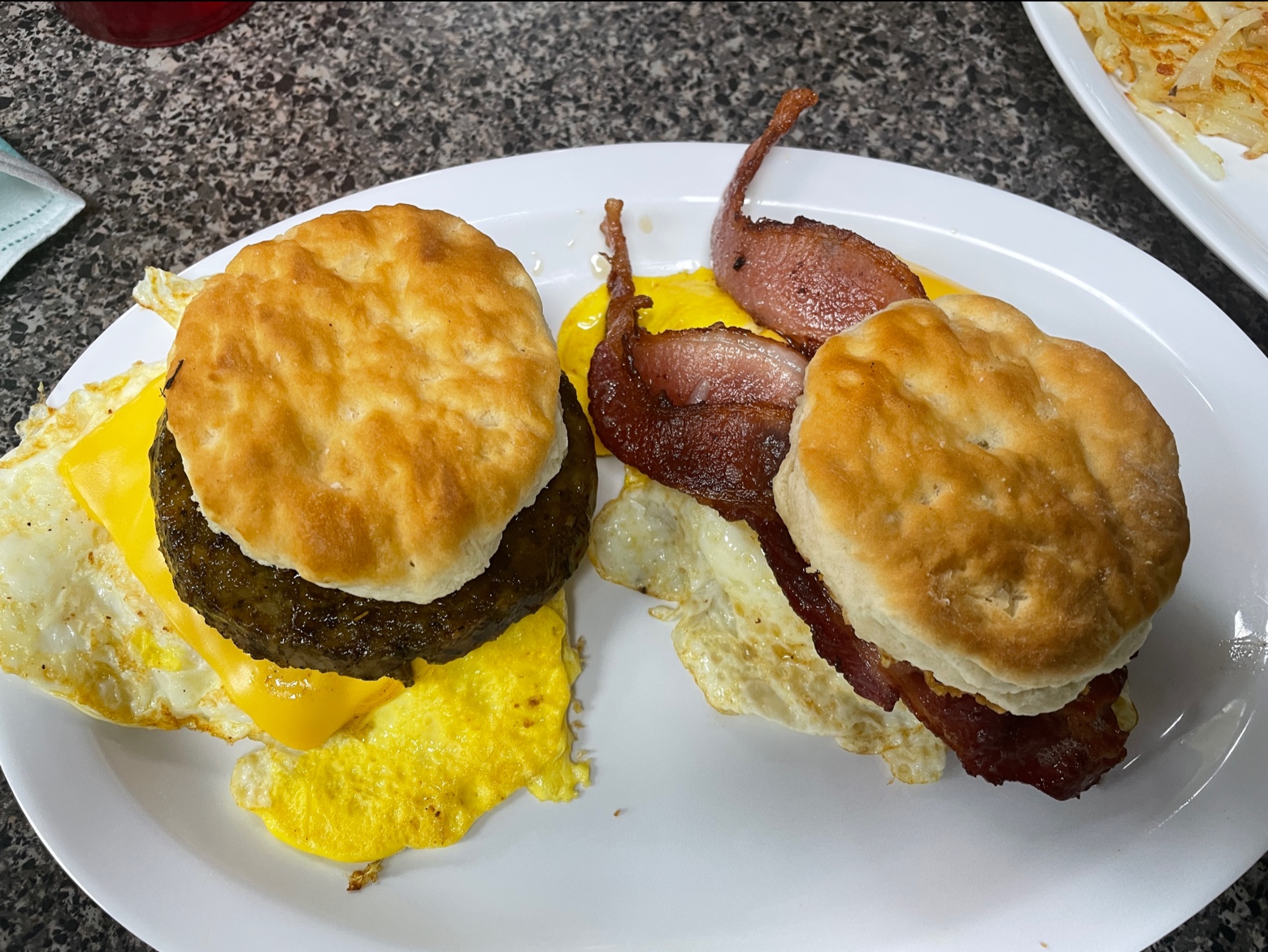 The place looks plain on the outside. Even a little uninviting. Maybe because of the high crime rate in Fayetteville. We’re not from the area but we see many news stories of shootings in Fayetteville. The walls and half walls up the windows are covered in corrugated galvanized steel. It’s installed well and looks cool. The restaurant and restrooms are clean. One concern was a staff member washing cups, utensils and dishes by hand in a sink. No really hot sterilizing dishwasher. We had scrambled eggs bacon, biscuit and country fried steak eggs, hash browns and pancake. Scrambled eggs weren’t mixed so they were all yellow. Just kinda scrambled on the grill while cooking. Leaving them lumps of white and yellow. Bacon and hash browns were a bit undercooked for me. I like it crispy. I suppose I should have asked them to make it that way. Country fried steak okay but had to much pepper in the gravy even for my wife and she likes spicy food. She didn’t finish it. Biscuits were not fluffy. Just tasted like a mouthful of lard like most restaurants in NC. I only took one bite. Pancake was good. And servers were friendly. The place flooded with city employees at lunch time. We counted 7 city vehicles in the parking lot on the way out. We are NOT native North Carolinians. So if you grew up eating your food this way you will...
