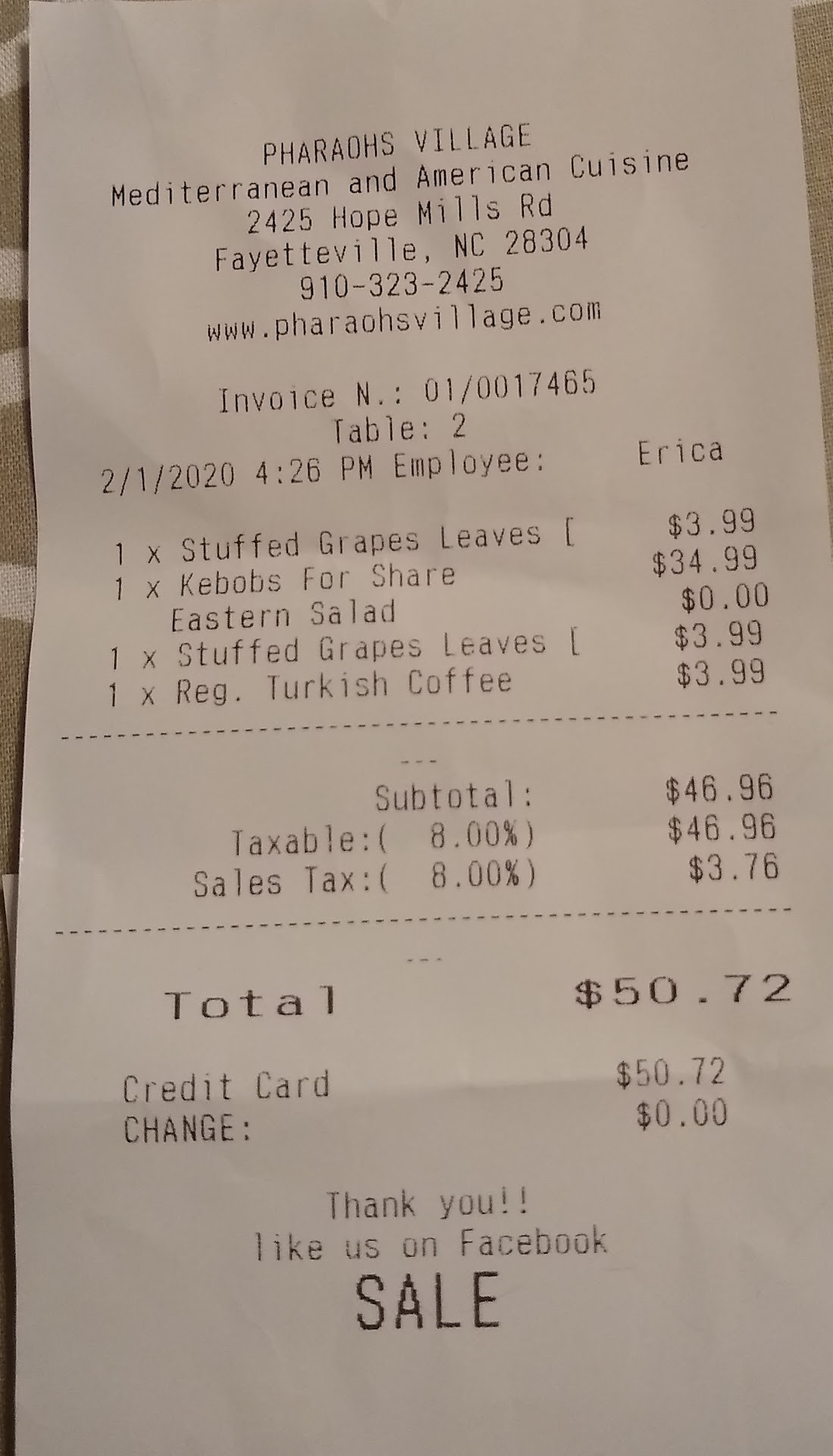 It was Saturday around noon and we were in need of some solid hangover food. Lucky for us Pharoah's has some of the best Mediterranean food in the Fayetteville area. This place is in a small strip mall / shopping center with plenty of parking. The exterior has a couple tables for patrons wanting to dine outdoors. Walking in you immediately see the menu and ordering register. Towards the right is a large dining area and further back sits a small market where they sell canned products, hookahs and other dry goods.