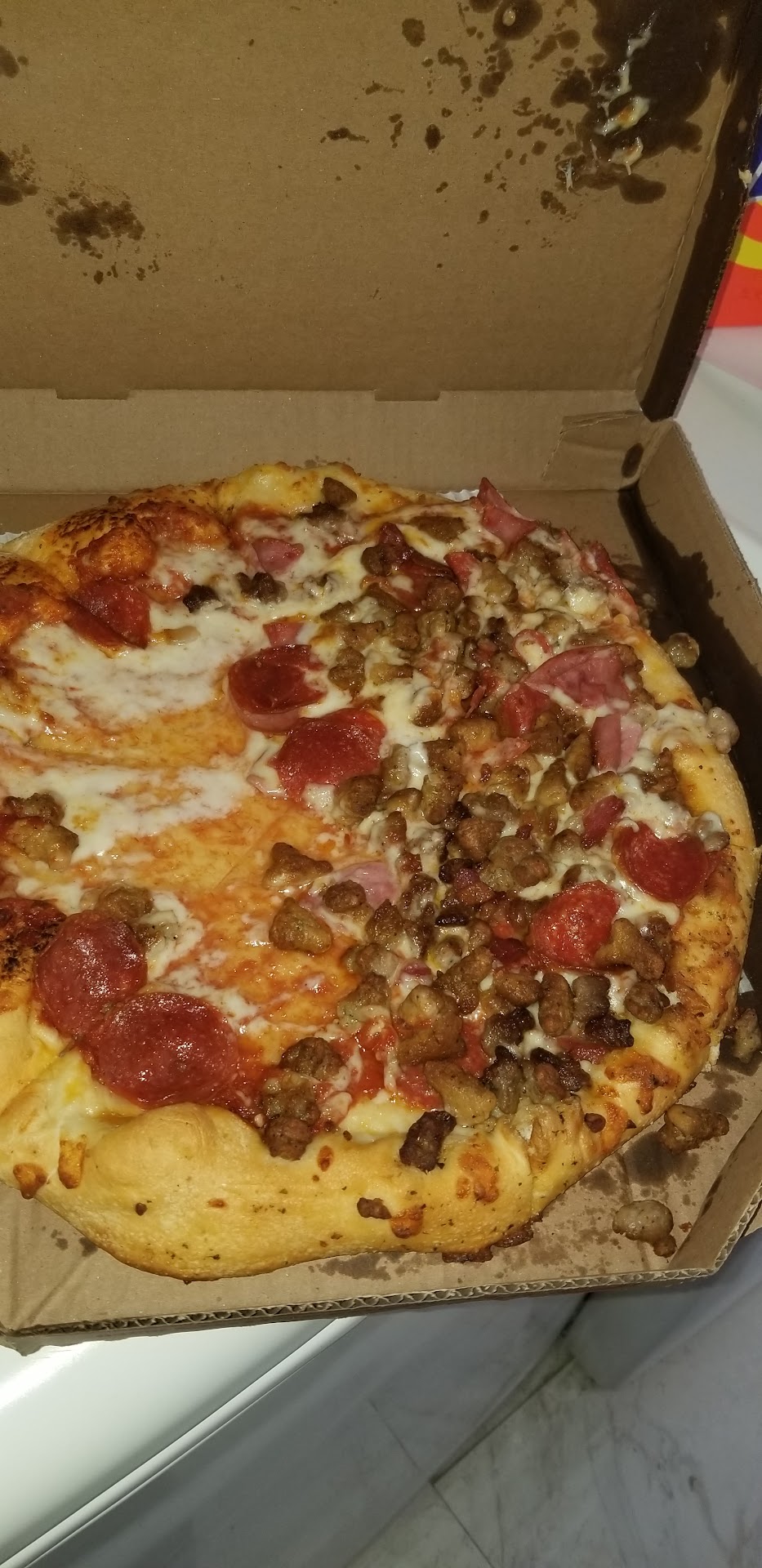 Read moreI don't order from here often because of problems with my last visit, but I decided to give it another chance because it was closer than my usual store. I wait at the counter for 10 min just to pay for my food that was already done, while employee walking around eating . I was scared to get out my car because of the numerous people running up to the car asking for money. Didn't feel safe at all. However the inside area was clean. I get home to my food and despite me ordering 3xtra toppings my pizza probably have 5 pieces of bacon and 10 pieces of mushrooms on the entire pizza. And my pizza melt wasn't nothing but cheese and bread . I ordered extra and received none basically and my wings were dry with barely any sauce. I am EXTREMELY disappointed in my experience at this location I wouldn't recommend it nor will I return to...