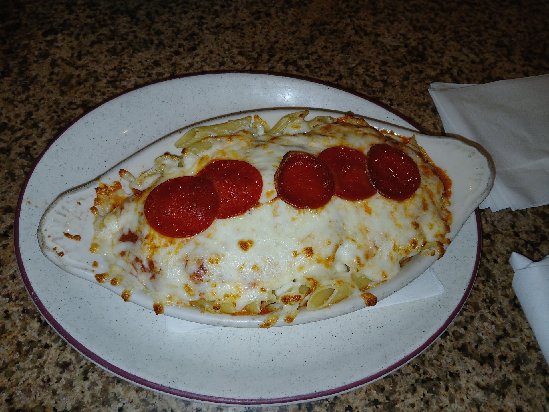 Read moreThis is one of those places that under promises and over delivers. We got a sub and a spaghetti but not just any spaghetti. This was the Spaghetti Deluxe. 😋 😋 I NEVER order spaghetti in a restaurant but from the description I felt like it was a safe bet. This was a very generous portion and had large meatballs, large slices of sausage, peppers, onions, mushrooms, and even large sliced pepperoni, plus plenty of delicious marinara sauce all topped with a generous portion of mozzarella cheese. It was heaped up on a large plate and served with 2 slices of garlic bread. Now you should know I'm a big eater but I could NOT finish that whole plate. My wife's sub was pretty big and just stuffed with meat, cheese, tomato, lettuce, and topped with Italian dressing & mayo. She chose not to get a side but she is a light eater. Of course she only ate half. With any luck I'll get the other half. 😆 This place will be one of our "go to" places when family comes into town. They have lots of Italian dishes but lots of other choices for picky eaters too. Pizzas, burgers, chicken, calzones, appetizers, drinks include,...