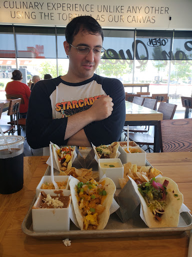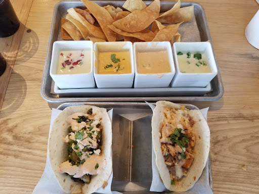Taste: OOOC I had the Los Cabos, it’s just your standard taco (Chicken, rice, beans and cheese). Pretty tasty, if not boring. I also had the Santorini (Chicken, veggies, and feta) which is my favorite so far. It was unbelievably fresh, and was just top notch all the way around. The Queso dip was very good, (I got the Cajun) which is to be expected if you’re going to name your place after it. The chips were fresh, and appeared to be made in house. All in all fresh, and tasty.