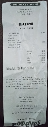 Read moreI visited the Popeyes restaurant in Fayetteville on Gillespie Street today. I was car #7 in line and the wait was so long until I decided to place a mobile order instead. I actually had enough time to set up my account for the first time, place my order, pay for my order and was still the second car in line waiting to order. The mobile app stated that I could pick up my order at the drive-thru by informing the employee of my order number. Well of course that didn't work out. I was told by the employee that all pick up orders had to be picked up inside of the restaurant. I stated what I read online and he stated that it was Popeye's policy to have all mobile orders picked up inside so the cameras could see the person who is picking up the order. I asked for the order to be canceled and was told I needed to do that on the app. I called Popeyes customer service and informed them and was told that there was no such policy. I contacted the restaurant and asked to speak with the manager who informed me that for an individual customer order it could indeed be picked up at the drive-thru only third-party orders needed to be picked up inside of the restaurant. I told the manager that I was still at the restaurant. You would think the manager would have offered to bring the order out but she apologized and stated she was sorry and she would speak with her employees. I don't know why I still expected decent customer service from this place.The bottom line is that I have patronized this particular restaurant for years and I have always been dissatisfied with their wait times, their service, and the availability of menu items. They are always out of something and I am always surprised when I am able to actually have what I want. I am tired of making changes to accommodate this restaurant and I decided today no more. I am done with this particular location. It is clear they have no appreciation for their customers and I will no longer tolerate this....