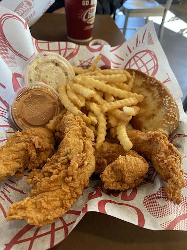 Ā Ā Ā Read moreSo if you have never been here, let me warn you. It only serves chicken fingers. They are cooked to perfection but thatās it. They serve it with crinkle cut fries,and coleslaw. Iām not a big fan of coleslaw but the fries were good but soggy. I gave it a four star because of the service. Iām not sure if the girl was training or what but she seemed not very bright. I originally ordered 4 boxes with kids lemonade but then I saw the kids meals and would have saved me 9 dollars. So I changed it to one box and 3 kids meals. Well that blew her mind. I was there for 5 minutes going back and fourth with my order. No I donāt want the original order I want the new order. Ugh. So anyway other then that it was good. But it was expensive. Let me put it in perspective you get 4 chicken fingers, a hand full of fries and a small 3oz cup of coleslaw for $7. Oh and a side of their sauce. Good but not 7 dollars...