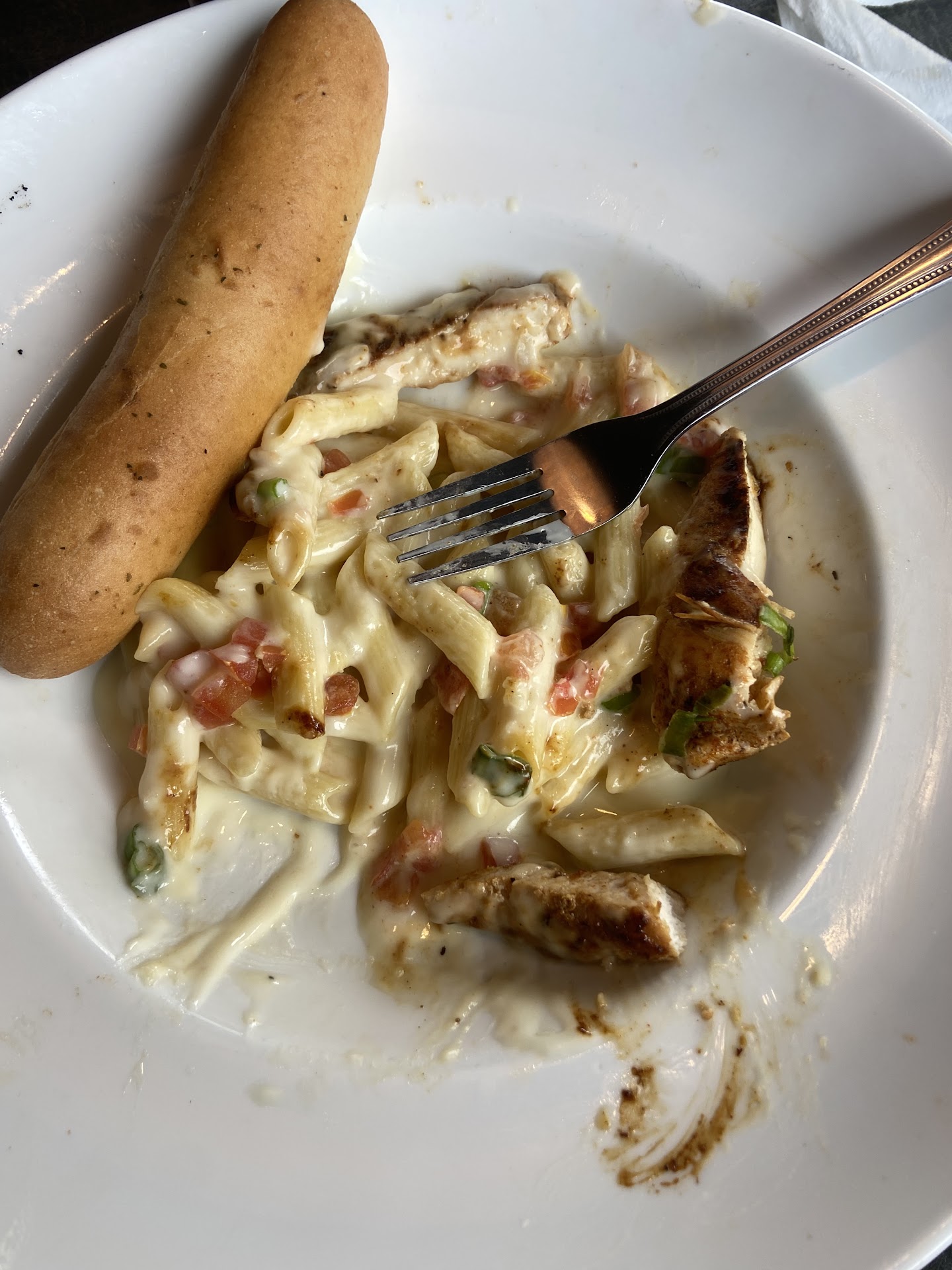 Read moreMy mother and I came here tonight and had the worst experience. We were greeted well and sitted immediately. However, the service failed tremendously after that. Our waitress Shannon was not anywhere near up to par to be waiting on anyone. When she finally came to our table we ordered an unsweet tea, and ice water with lemon and a glass of Pinto Grigio. She brings us two ice waters with no lemon and wine. She said they didn't have my wine so, I ordered Chadanay. She didn't ask if we were ready order, just left and went on to the next table that came in after us and took their order. She had no personality whatsoever. She finally came back to us with the unsweetened tea and my Chadanay and took our order. Mind you we were never given straws, napinkins or silverware until we asked, but the table that came in after us was given everything without having to ask. Placed our order and when the food came it was another disappointment the Chicken Carbonara didn't come with real bacon only bits , you couldn't taste the bacon...had to serach for it and I didn't even eat it. While she did bring us salt with our food she failed once to not bring pepper. We paid for our food and left no tip which is the first time. We are very generous with people that wait on us , but only if they deserve it. She really needs to find another line of work for she has no sense of her job duties. I've been to this establishment many times and never have I experienced such lack of attention. One more tidbit, she threw trash over to a table across from us with no regards of people seeing her which I find another reason she needs to find another job!!!! It's very upsetting because tonight was a very special evening for us and we went to several other establishments before ending up here to only be extremely disappointed and mostly due to the lack of service/attention by Shannon. I know our economy isn't doing very well with this pandemic and the restaurant industry has been hit really hard, but you won't do yourself justice if you hire people like Shannon, just saying from a consumer who values/expects great service. Amelia