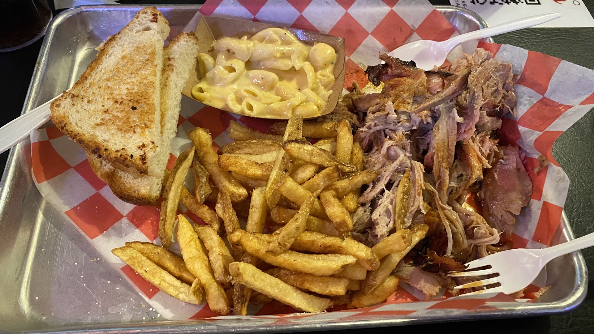 This is currently my go to BBQ place. Not the easiest place to get in and out of, the entrance is on a side road which connects to the main road in the middle of a curve and the parking lot has a curb that could be leveled. Despite that, the food is great and in good weather the raised porch is very nice to relax on. The sweet tea is good, and I suggest trying the BBQ Philly which has brisket, onions, and bell peppers all covered in cheese and can come with seasoned...