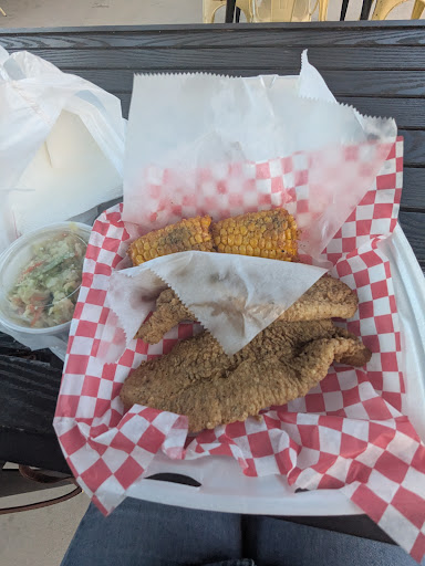 I ordered the catfish, fried corn on the cob and coleslaw. That corn was to die for so flavorful and juicy. I don't know who seasoned, breaded and fried that fish but they did the thang! 👏🏿👏🏿just crispy and ever bite was mmmm mmm good. I also loved the hot cake, it added a sweet flavor to a savory meal. Now the coleslaw was my least favorite. Idk what about it wasn't for me but they could have kept that. Wait time wasnt long and the guy that passed me my food was very polite and kind. Didn't even give the stank eye when I asked for more napkins. 😊 Definitely coming back and will be telling everyone with ears about...