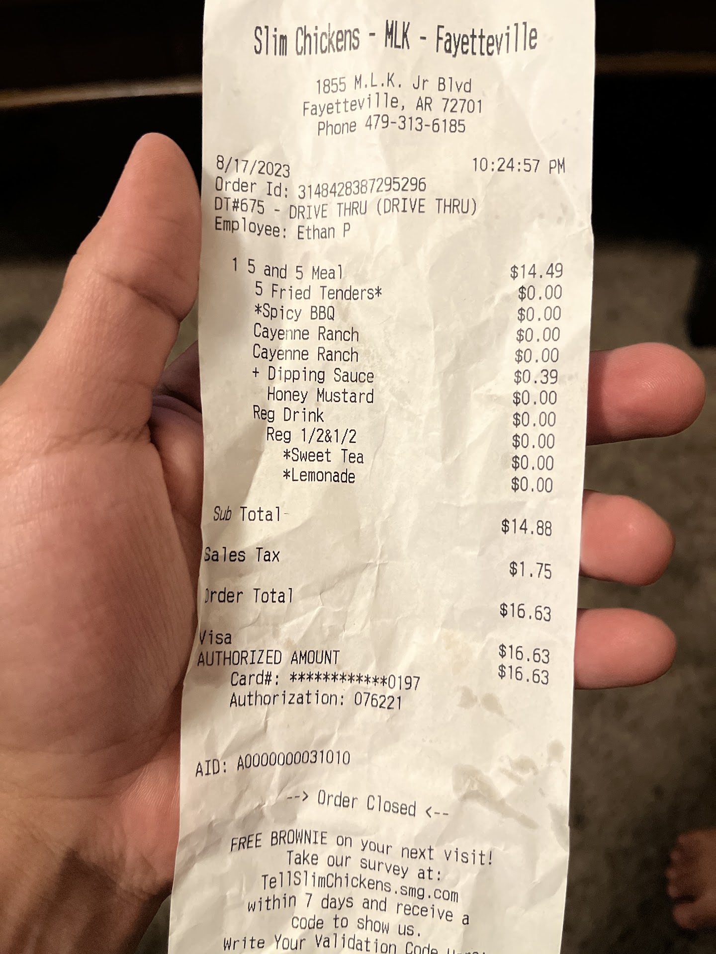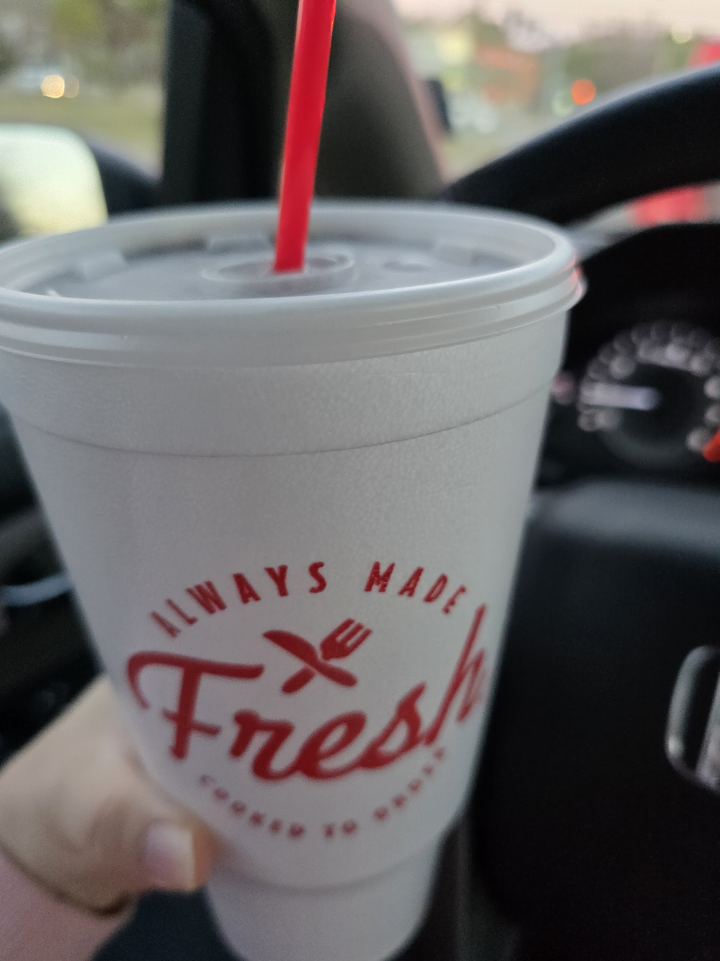Read moreHonestly 3 might be a little high but I'll round up. Fair points for style and taste in terms of seasoning and overall the experience of the bites were ok, pretty good I'd say. Wings weren't soggy, that's always nice. Loss points. I went at about 1pm and it should be busy, it wasn't. 3 cars in line. To cut short a long winded argument...too slow, food tasted lukewarm by the time I got home just 1.2 miles away and felt like a heat lamp situation anyway. Chicken strips were a little too chewy, wings were well cooked, maybe perfect when they were fresher. I had Korean BBQ wings and the house sauce for dipping the strips. Both good flavors, enjoyed the tangy qualities. The fries were meh. The coke from the fountain was the star of the show...yes McDonald's quality. I think this chain has potential, they've developed a lot of flavors for fast food with the seasoning and sauces list, which will take me time to get to know. All they lack is some retooling the process to make it fresh and bring back the lines. Should have more than 3 cars at...